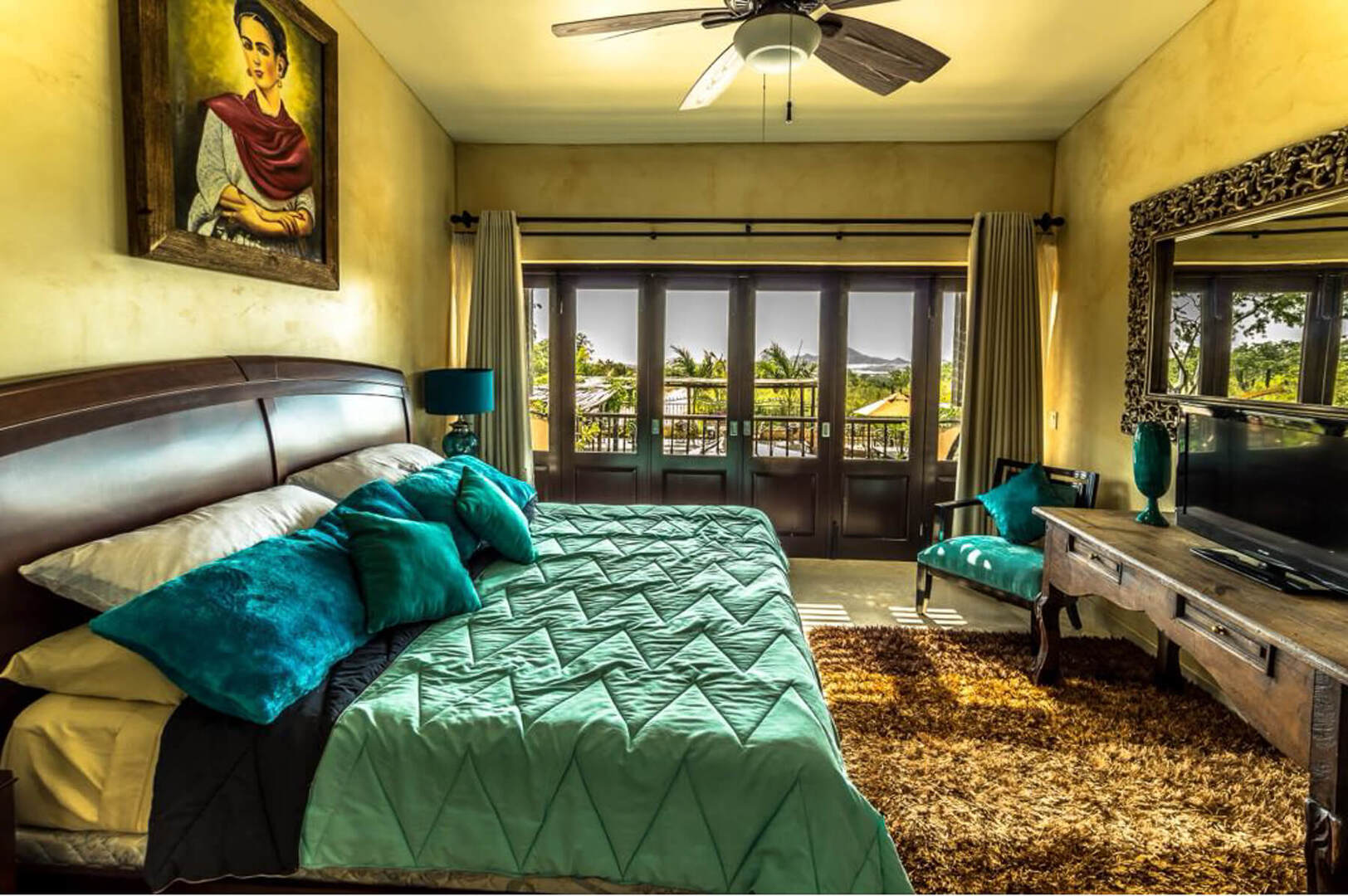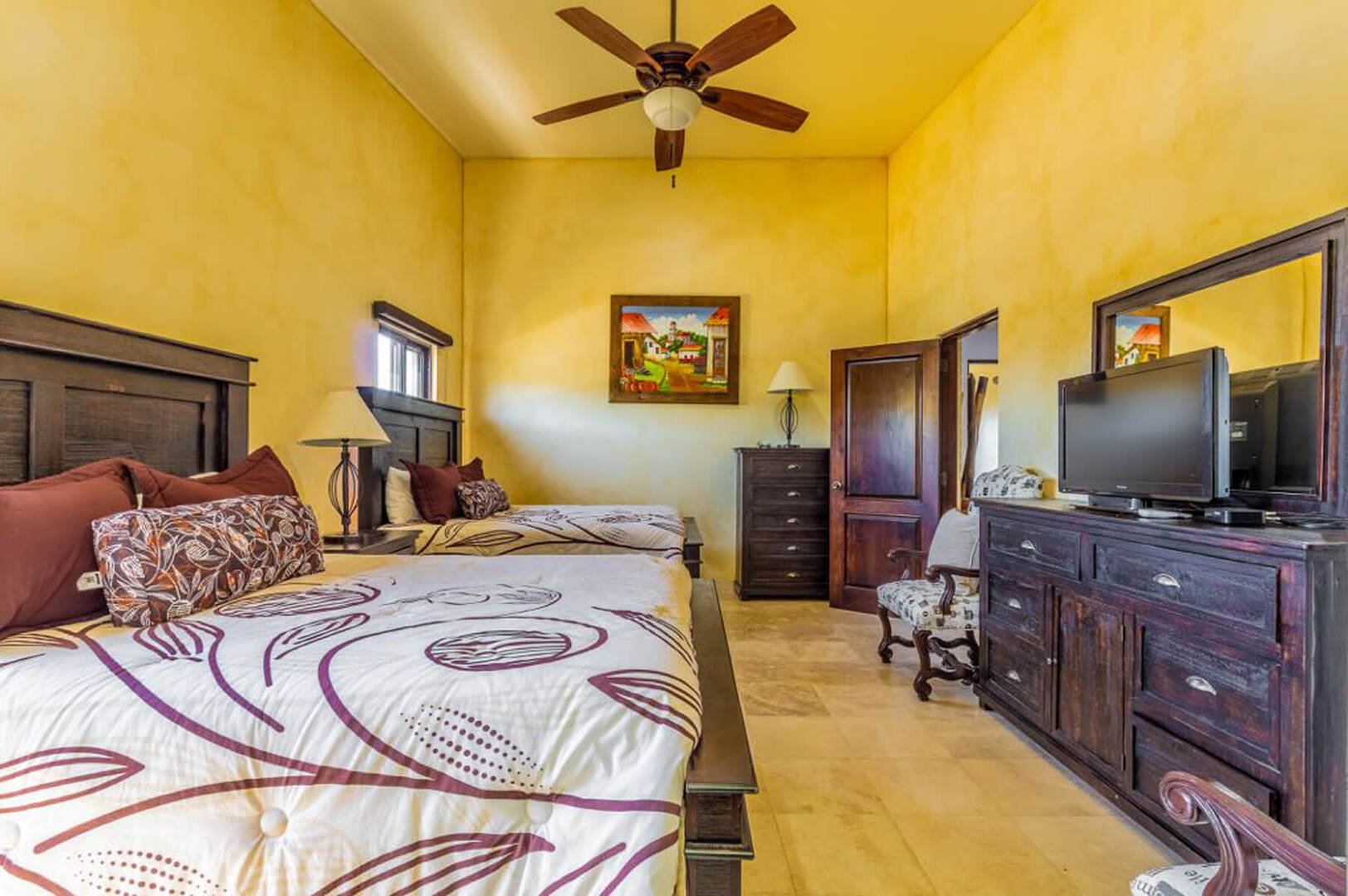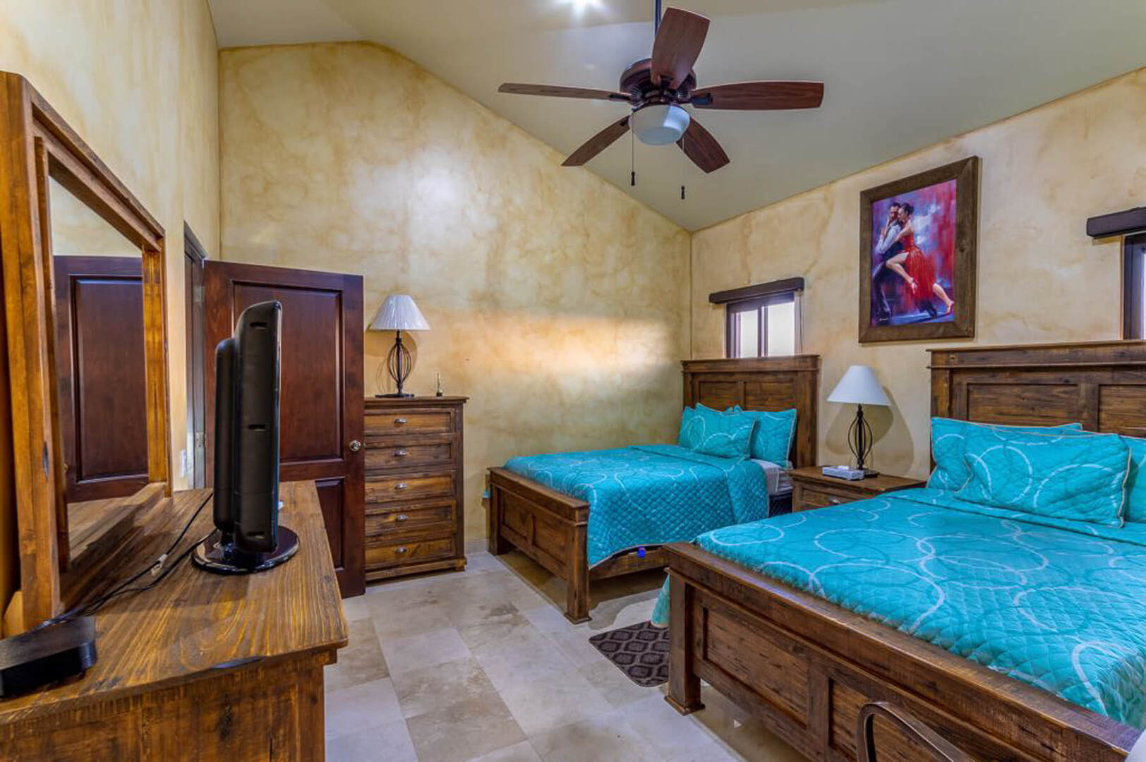 This expansive property includes four spacious bedrooms that have been outfitted with vibrant linens and plush pillows. Two of the villa's bedrooms feature King beds, private terraces and breathtaking views of the surrounding landscape. The third and fourth bedroom contain 2 Queen beds, while all the bedrooms also include a TV and ensuite bathroom. If needed, 2 additional Queen beds can be brought into the Games Room.