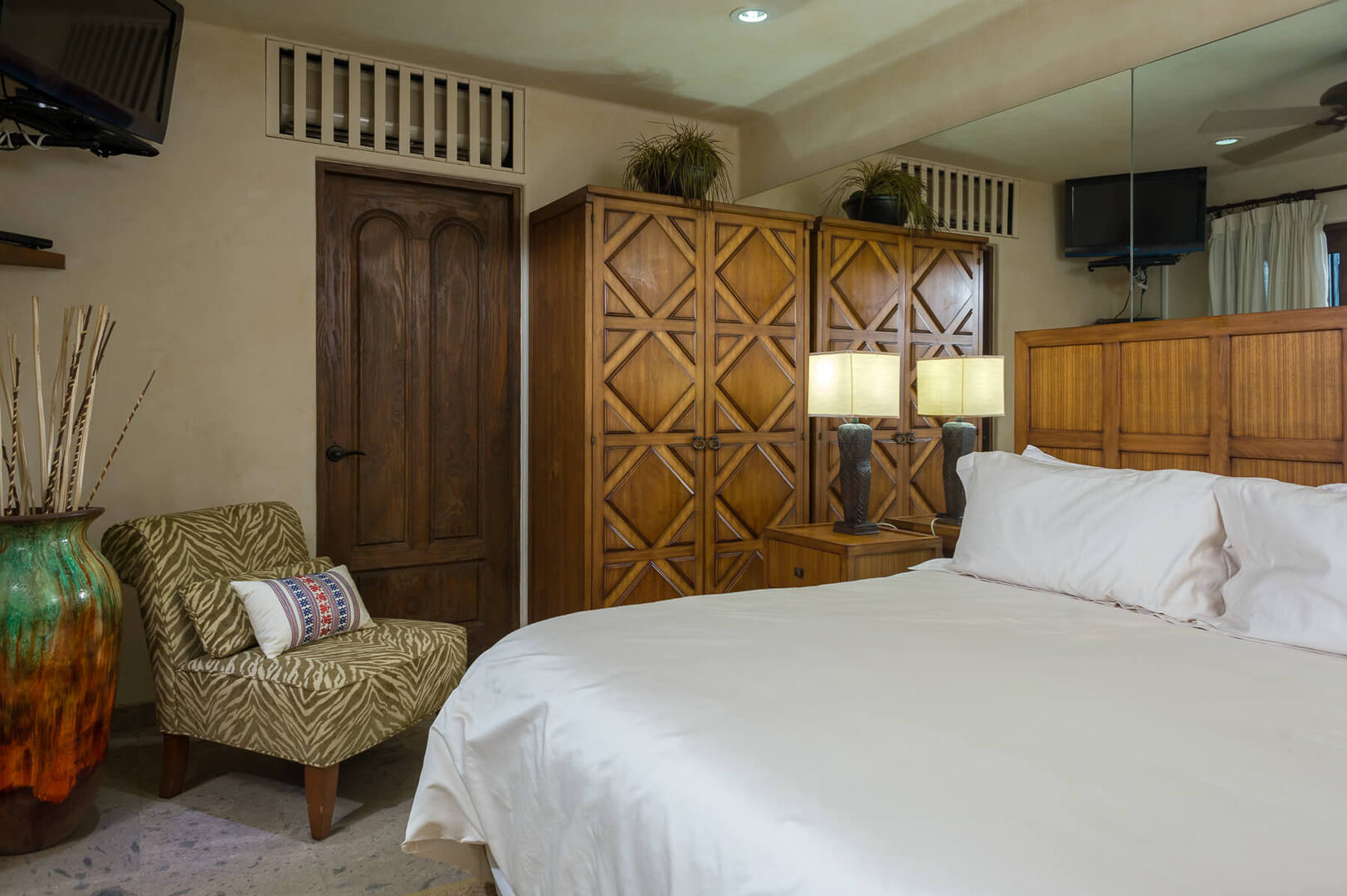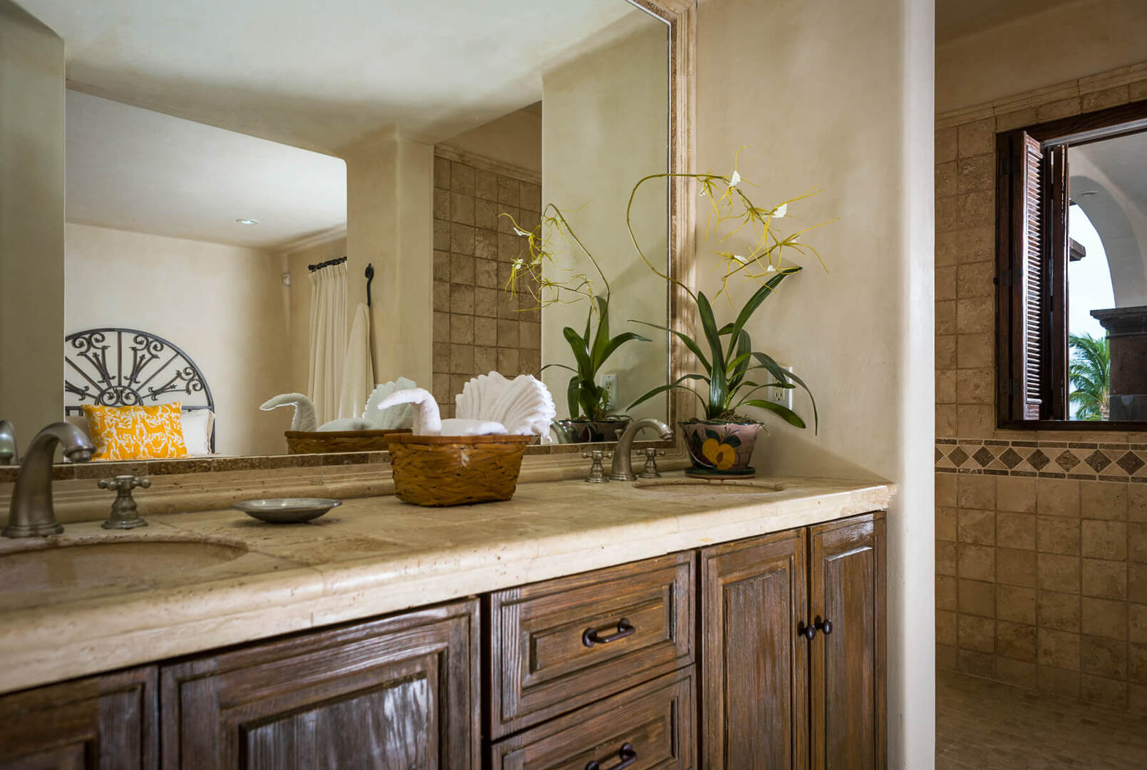 An idyllic blend of Spanish Colonial hacienda and Tuscan villa, Alegria features palatial columns, exquisite stonework, and beautiful wood accents throughout. The interior of the home is luminous, as sunlight floods in through the windows up to the vaulted ceilings, creating a warm and welcoming ambiance. With vibrant, plush pillows and soft linens, each of Casa Alegria's 5 bedrooms will become your own private oasis. As well as including their own ensuite bathroom, the bedrooms all feature a stereo system and an in-room safe for your convenience. Two rooms feature a private terrace and panoramic views of the Sea of Cortez.