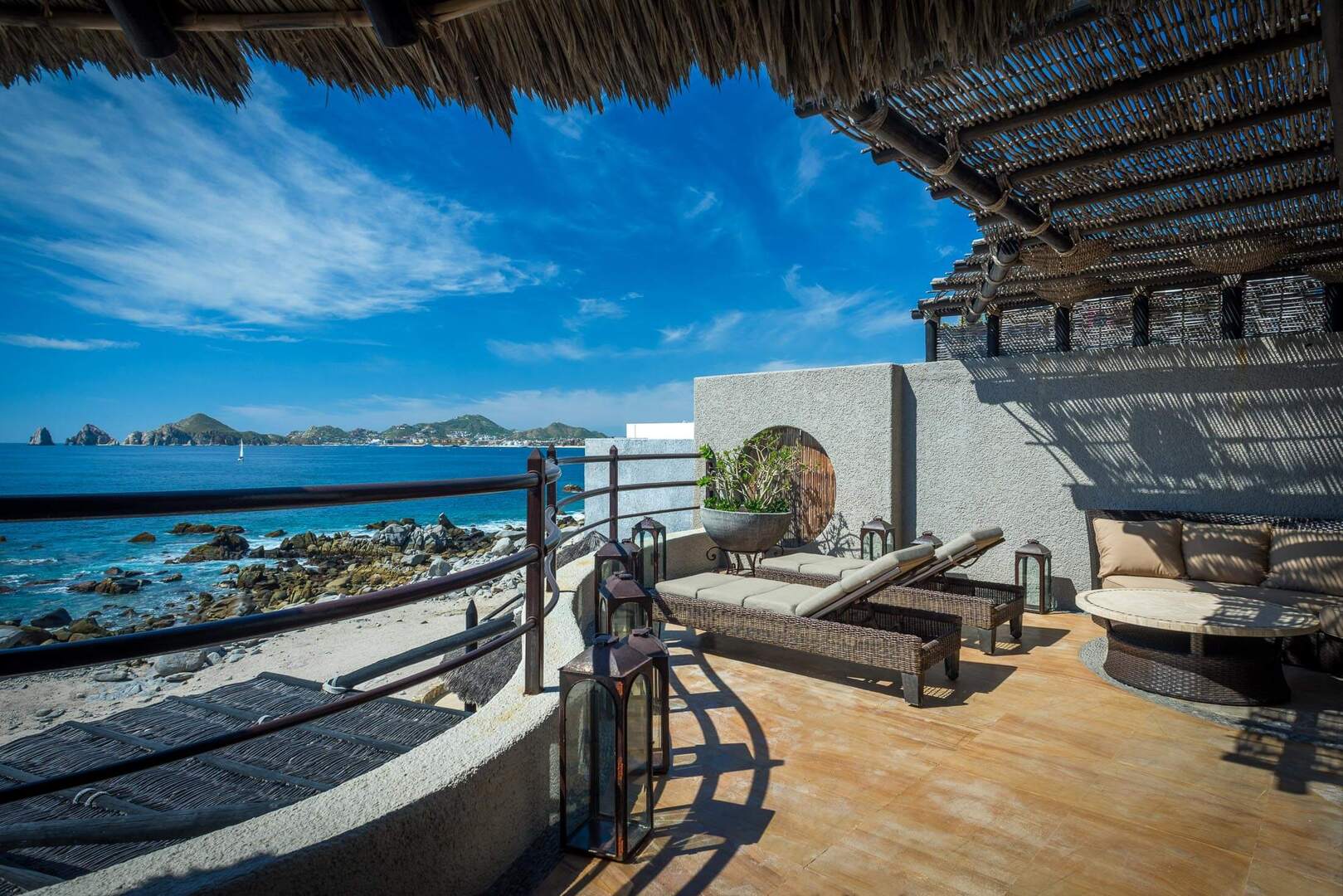 Perched right on the beach and surrounded by exquisite ocean views, Casa del Arco exudes the utmost in luxurious accommodations. With walls of windows stretching from end to end, this waterfront retreat entertains with the promise of upscale amenities and top-notch finishes.