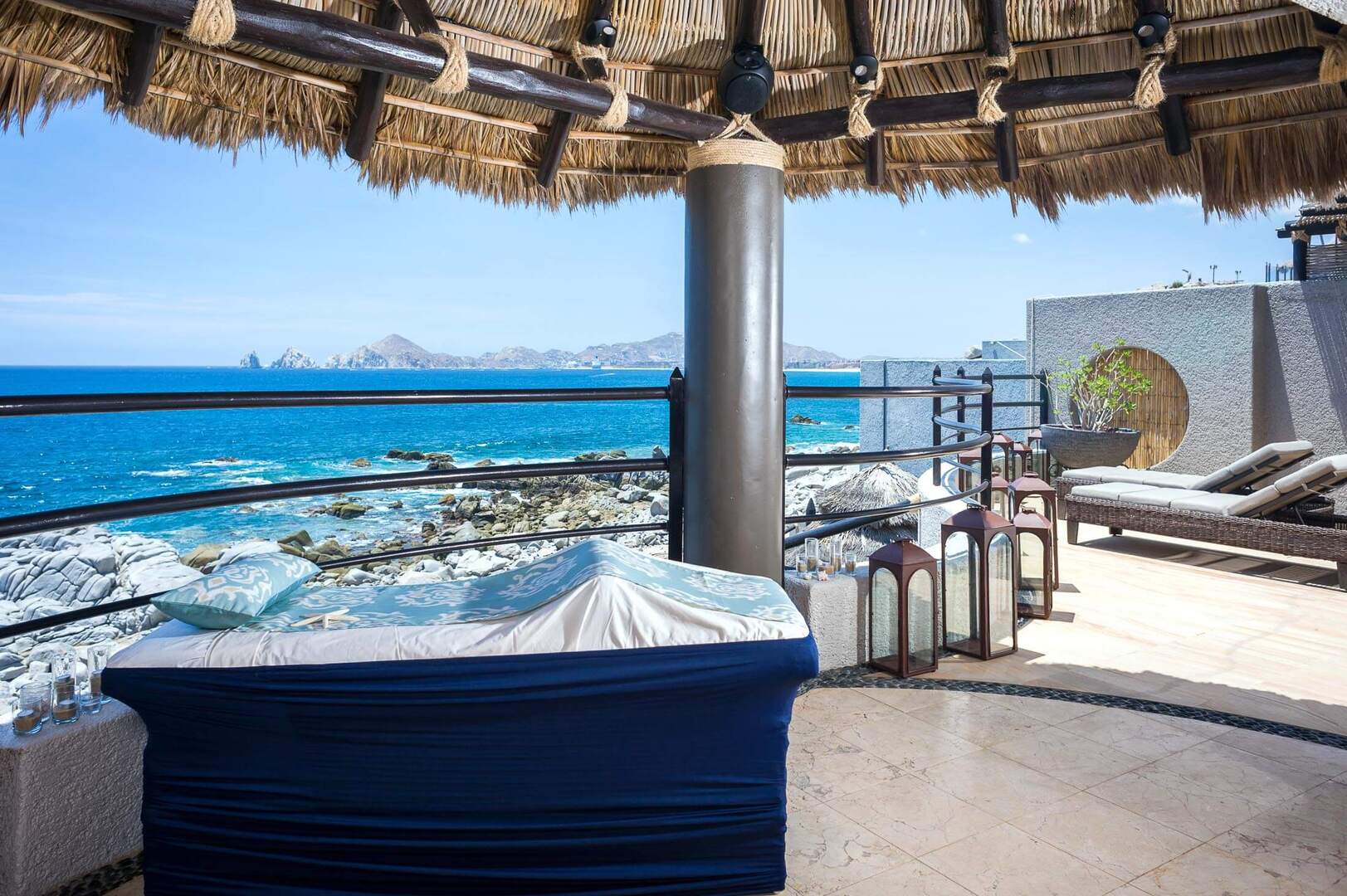 Be sure to also take advantage of the heated infinity pool, outdoor stereo and traditional Mexican palapa, as well as the gas barbecue. Other unique features of this property include both a swimmable beach for snorkeling and a surfing beach that are within approximately a 400 yards of Casa del Arco. An outdoor basketball net is also available. Easily entertain your guest with the help of Casa del Arco's numerous indoor and outdoor amenities. Inside you'll find a spacious open-concept living and dining area where you can enjoy a candle-lit gourmet meal, overlooking stunning Lands End and the bustling Cabo San Lucas Harbor, or lounge on plush sofas in hues of blue, where you can enjoy breathtaking views of the Pacific through floor-to-ceiling sliding glass doors. Modern and comfortable, yet richly appointed with a blend of stone and woodwork, this luxury villa capitalizes on the charm of the nearby resort community, mixing neutral tones accented by pops of occasional color while being set against the backdrop of nature's most impressive scenery. This graciously appointed home is private yet inviting, with an impressive location just a short walk away from attractions like The Cape, a new Thompson Hotel featuring the signature restaurant Manta. This location effortlessly tempts your taste buds with a rich blend of offerings from renowned chef Enrique Olvera. Experience the ideal oceanside retreat at Casa del Arco! 4th BR can be either 2 Twin beds or 1 King bed.