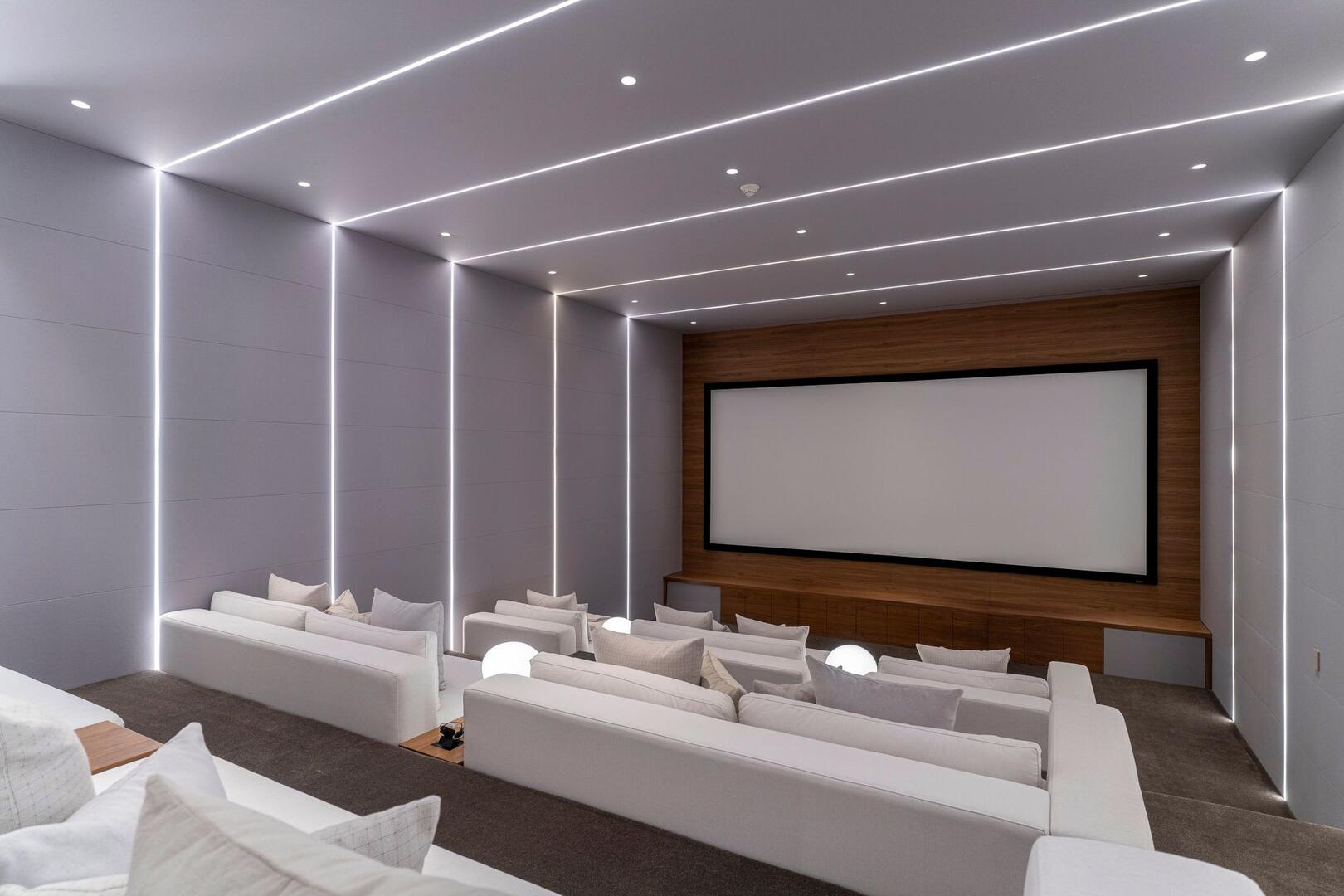 The state-of-the-art fitness studio is equipped with top-tier equipment and is complemented by a refreshing plunge pool for post-workout cool downs. For entertainment, the private theater offers plush seating for 16 and a wet bar, ensuring every movie night is an exclusive experience.