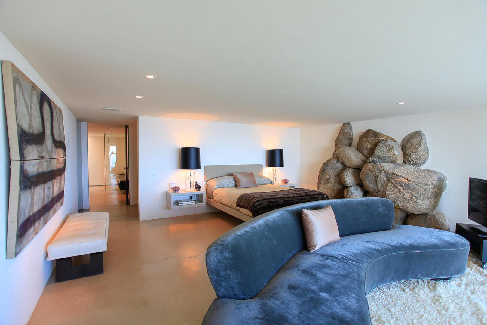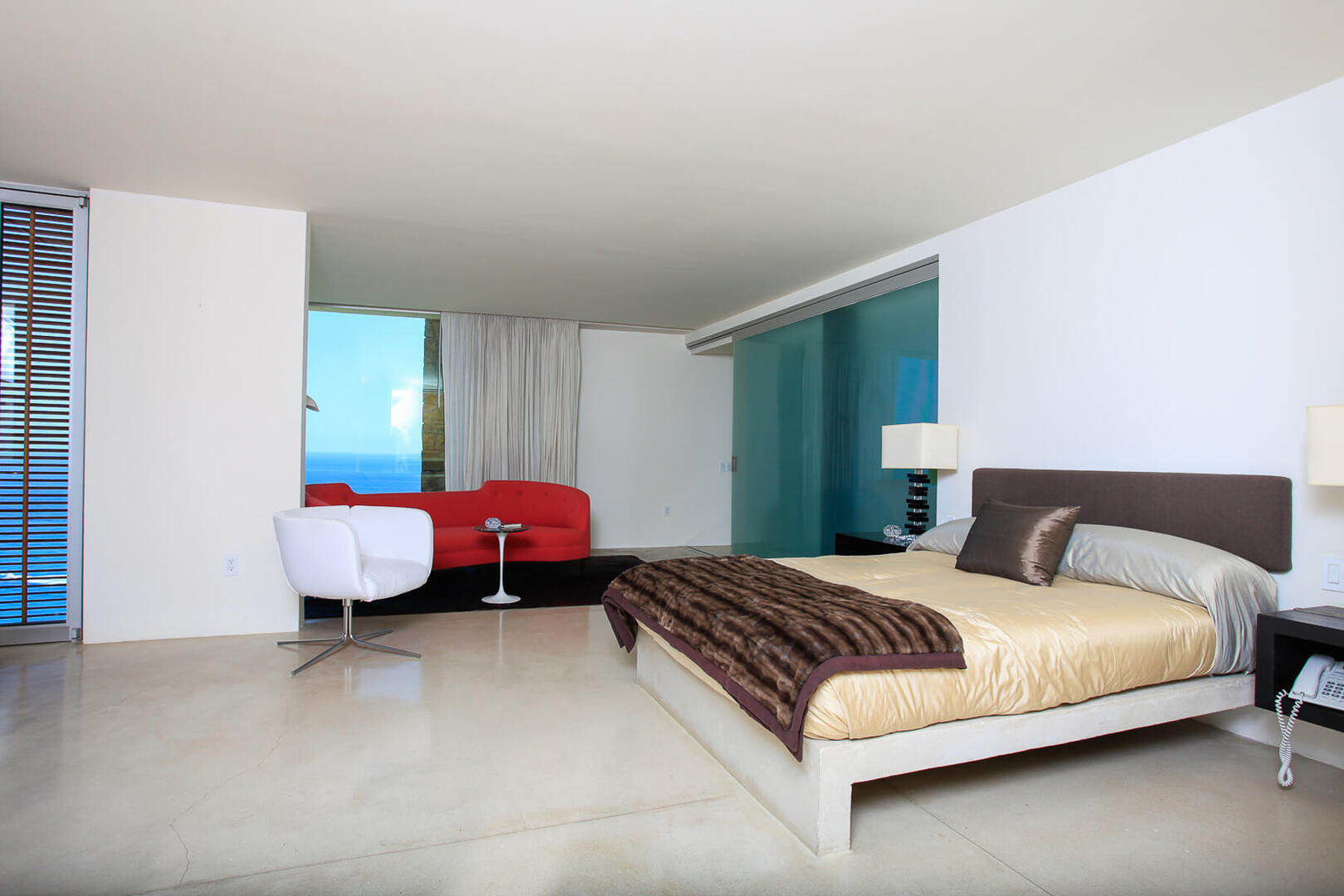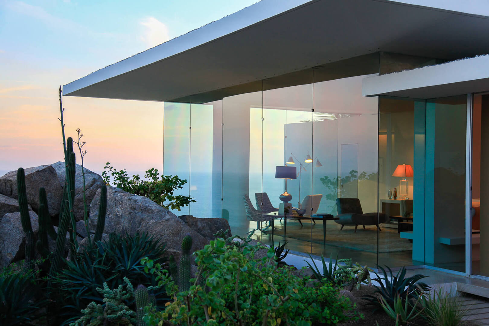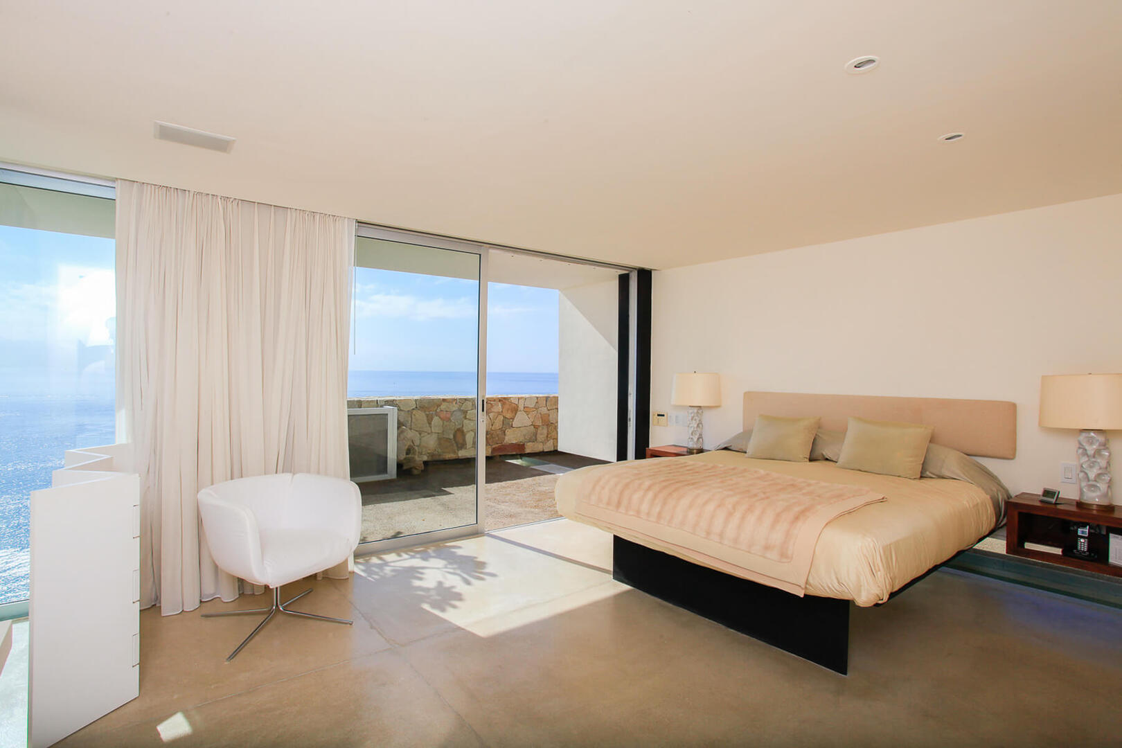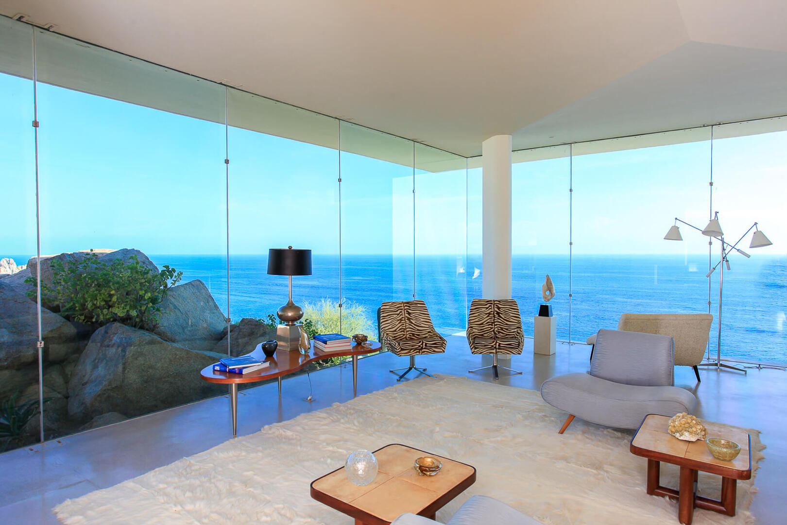 The property looks out over the Pacific Ocean, and in this case "looks out over" is no euphemism: the architecture stints on nothing, and cuts no corners, so that each window might maximize the view while relenting it to the interiors.