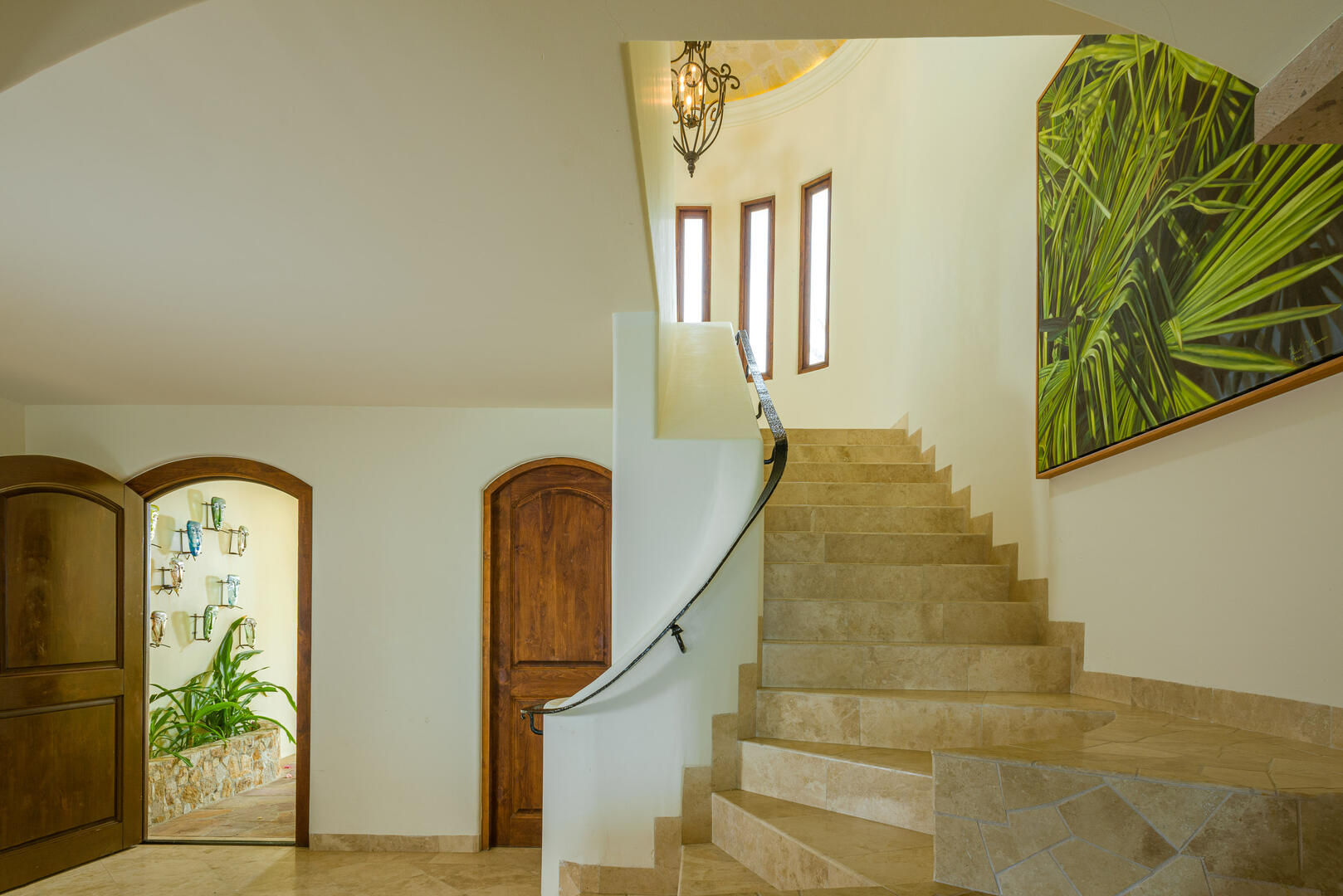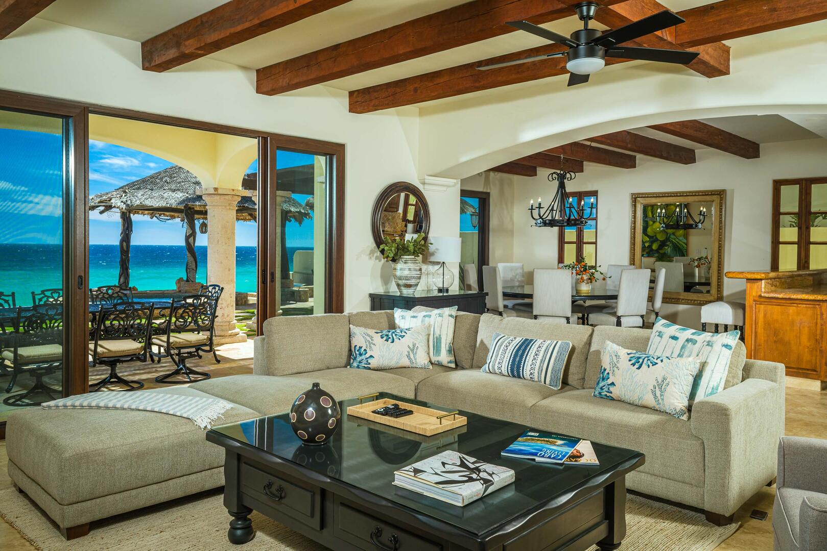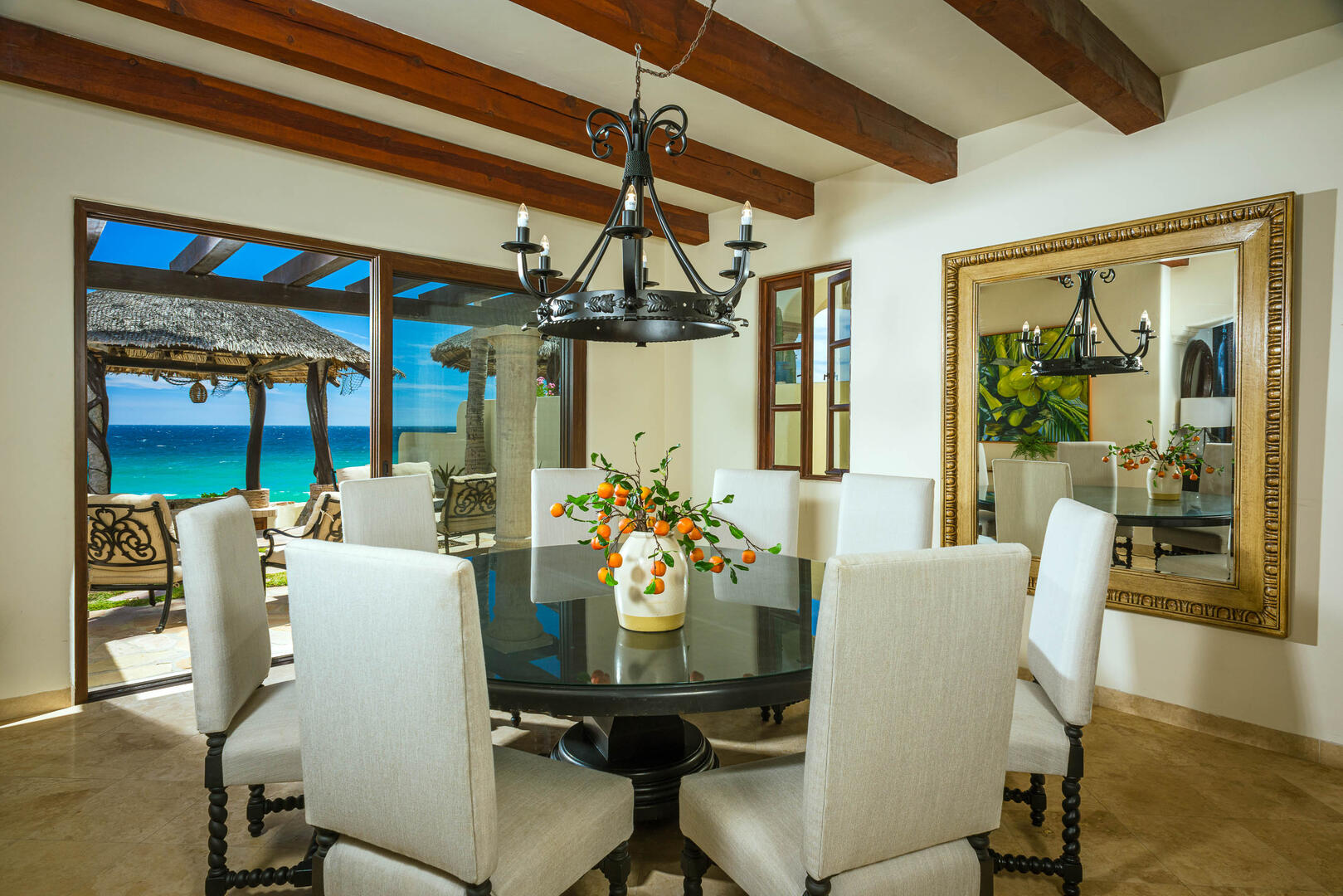 With miles of pristine white sand right at your doorstep, Casa Maya is the ultimate beachfront getaway. Situated on the beautiful East Cape of Los Cabos and hidden away in the exclusive El Encanto community, this palatial home offers its guests supreme luxury and privacy. Inspired by the haciendas of Old Mexico, Mayas architecture features high ceilings, rustic wood beams and arched walkways with grand stone columns. Inside the home, colonial-style furnishings complement the ambiance and add to the classic elegance of the interior design. Decor is fresh and vibrant with splashes of blue to mirror the unlimited vistas of sea and sky pouring through the windows.