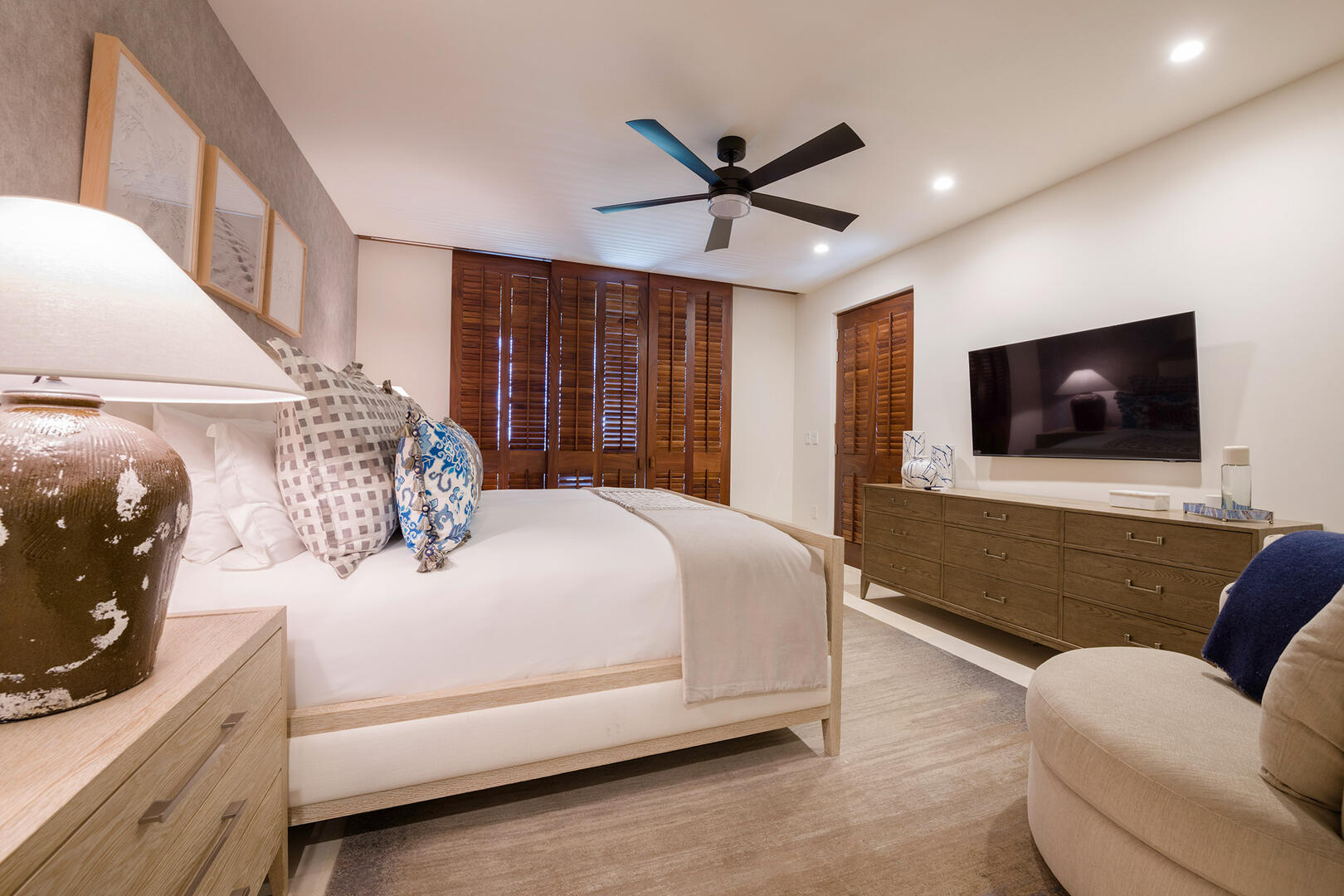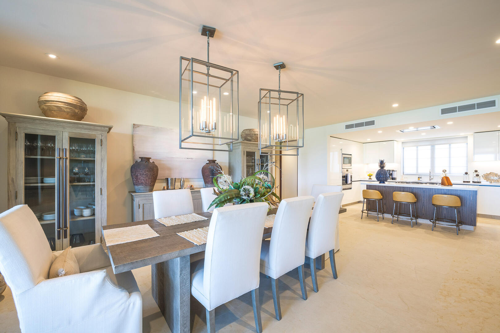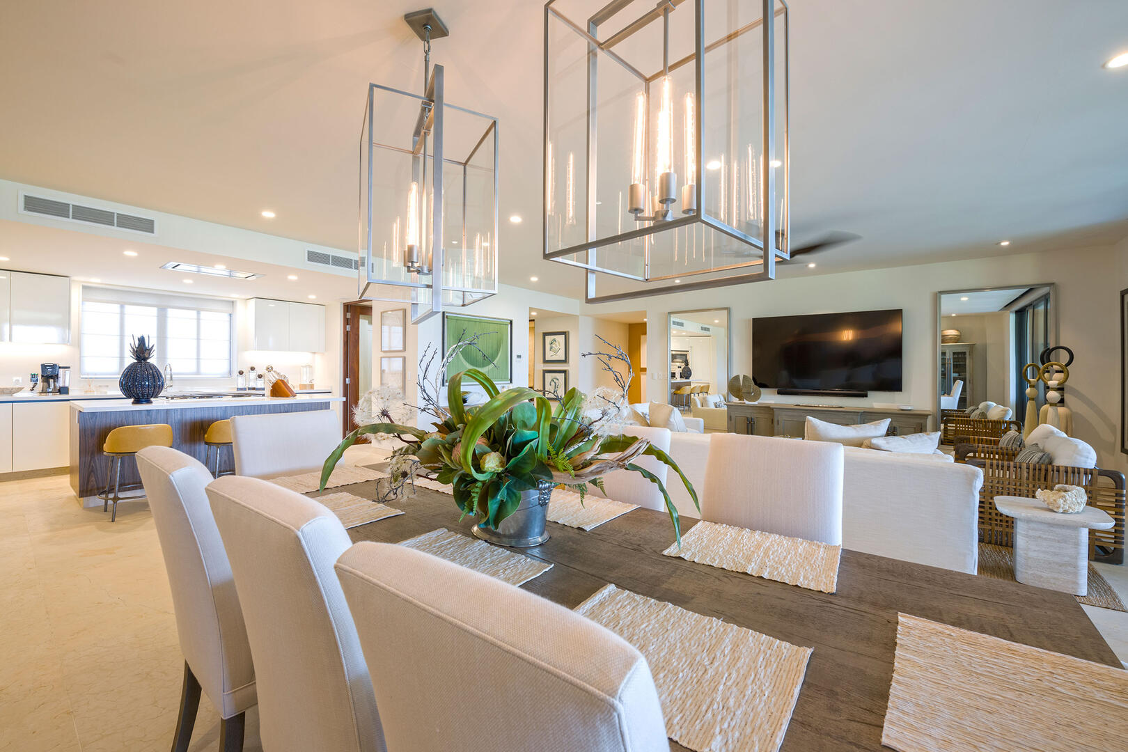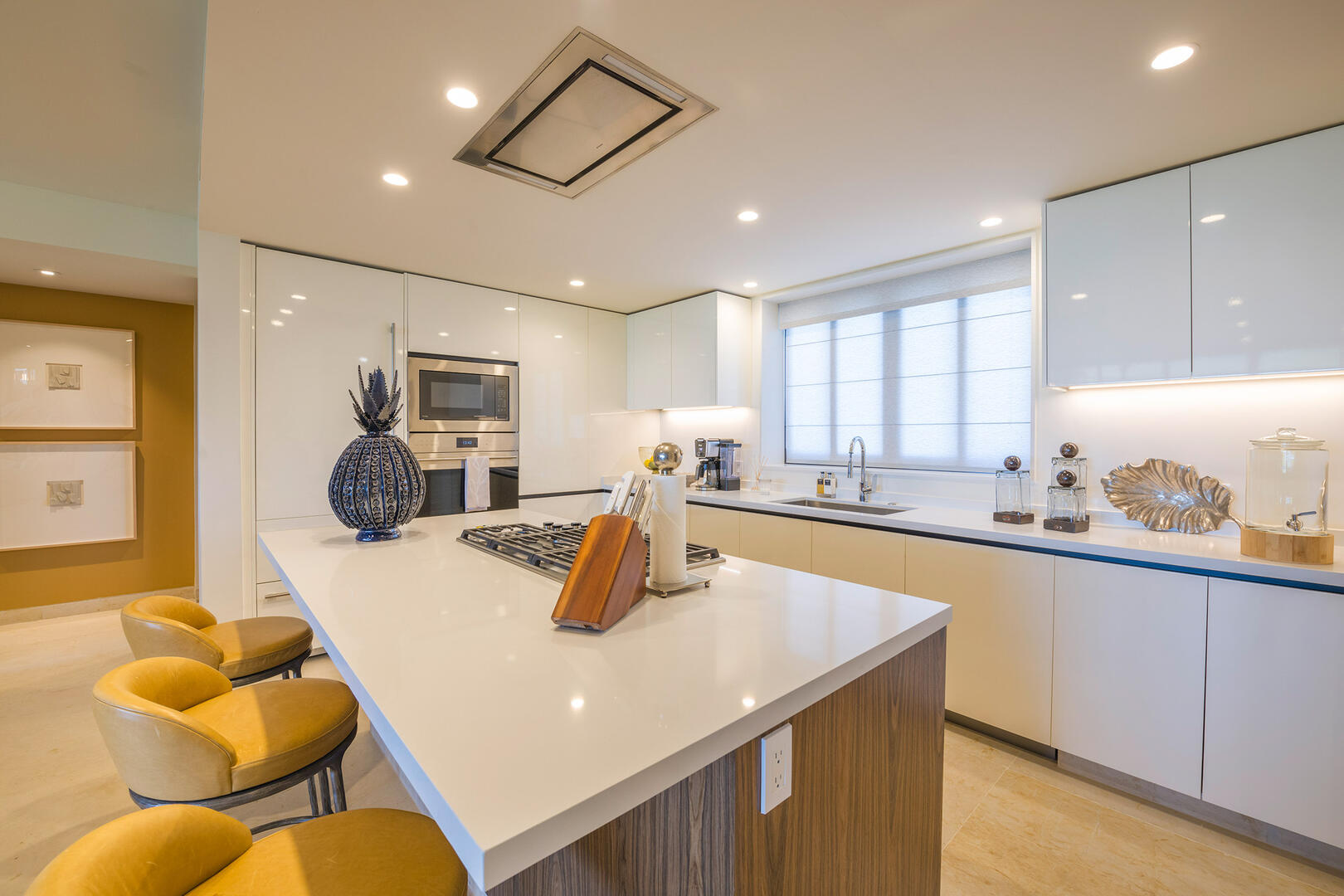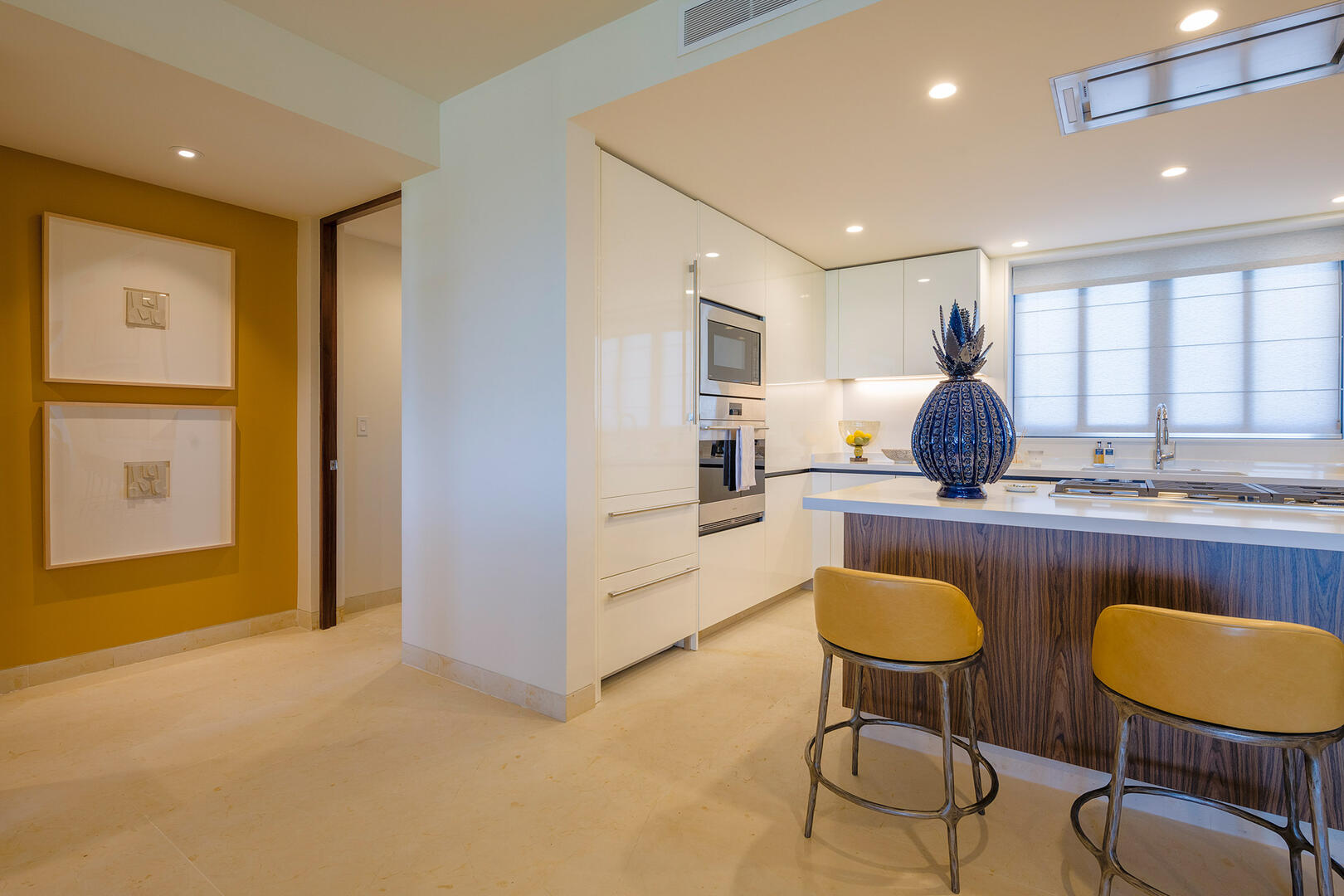 Enjoy additional views, as the private bedrooms also open to outdoor seating space. In the main section of the condo, sophisticated lighting extends from the ceiling above a formal dining table for eight, alongside a living room with comfortable seating and a flatscreen TV. This extremely open section of the condo also includes some island seating in the gourmet kitchen with stark white cabinetry and countertops. Sit back and relax in the space, as the condo features a chef for breakfast preparation, as well as daily housekeeping and concierge services. For added convenience, the condo comes with free Wifi and a water purification system.