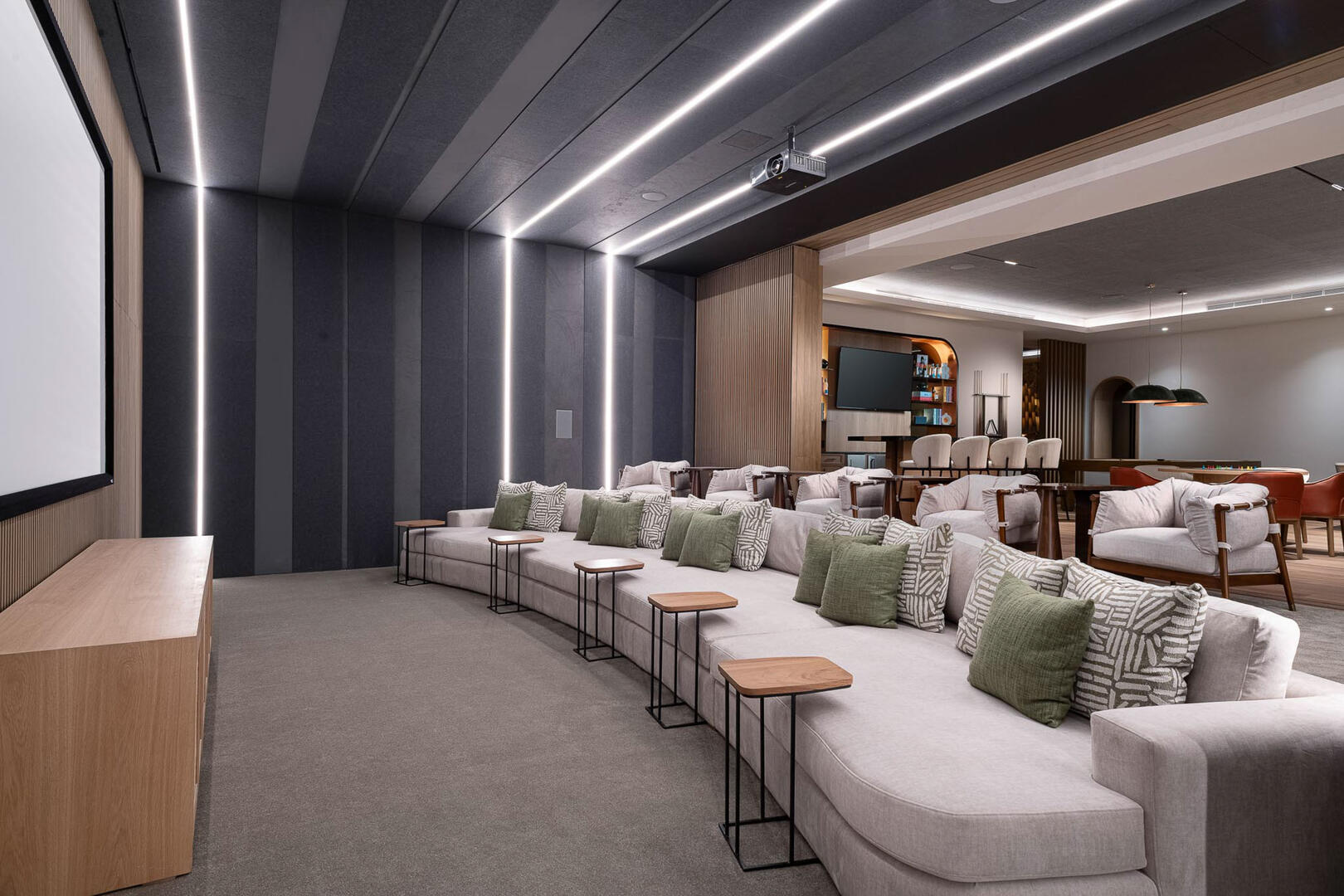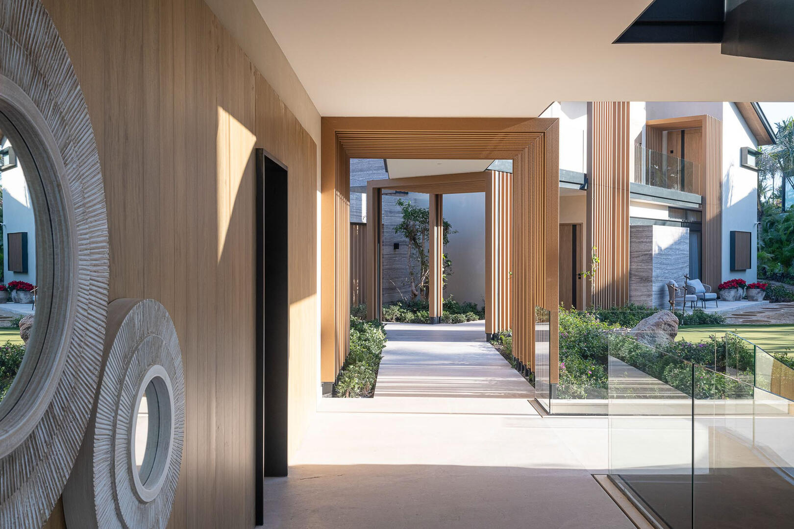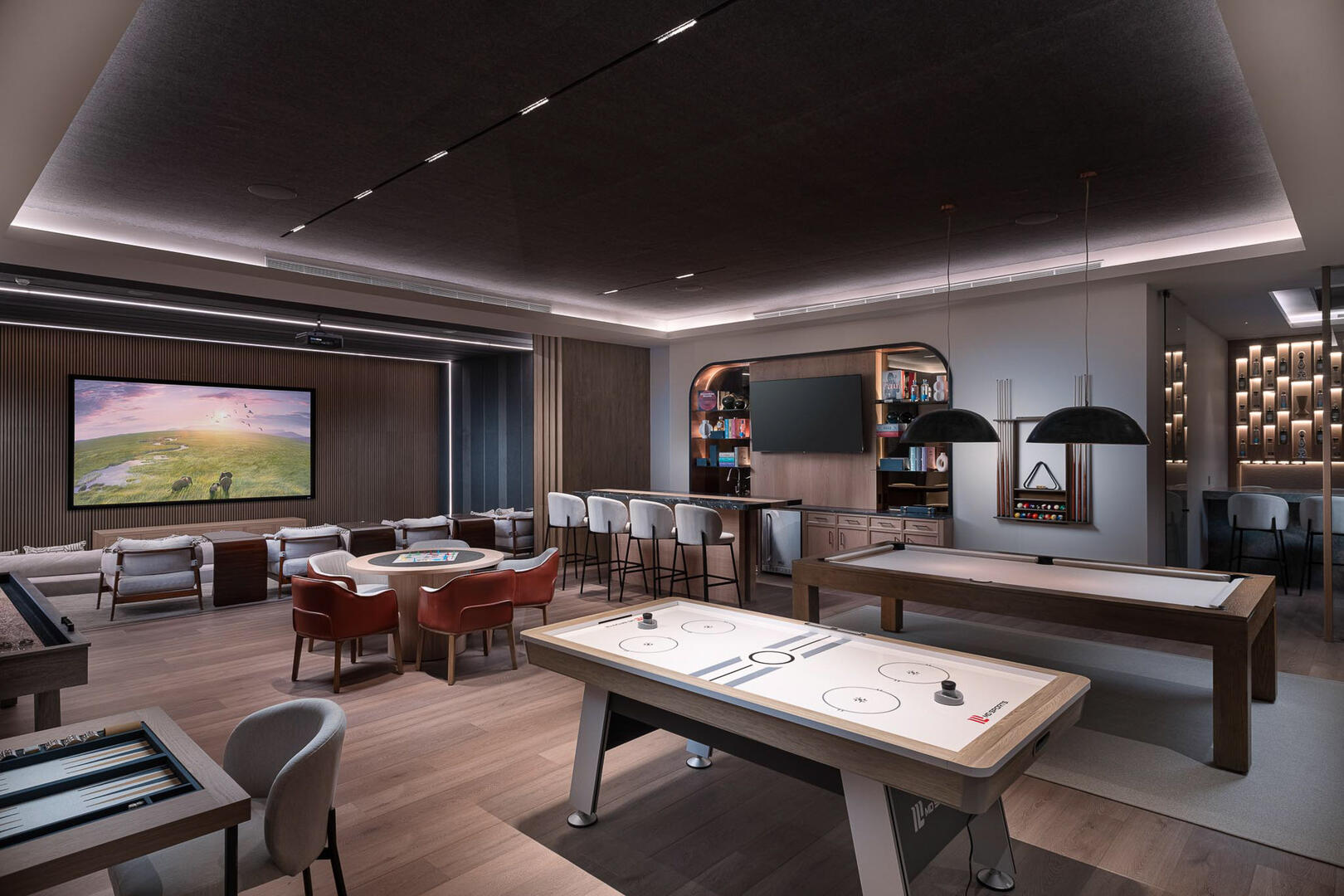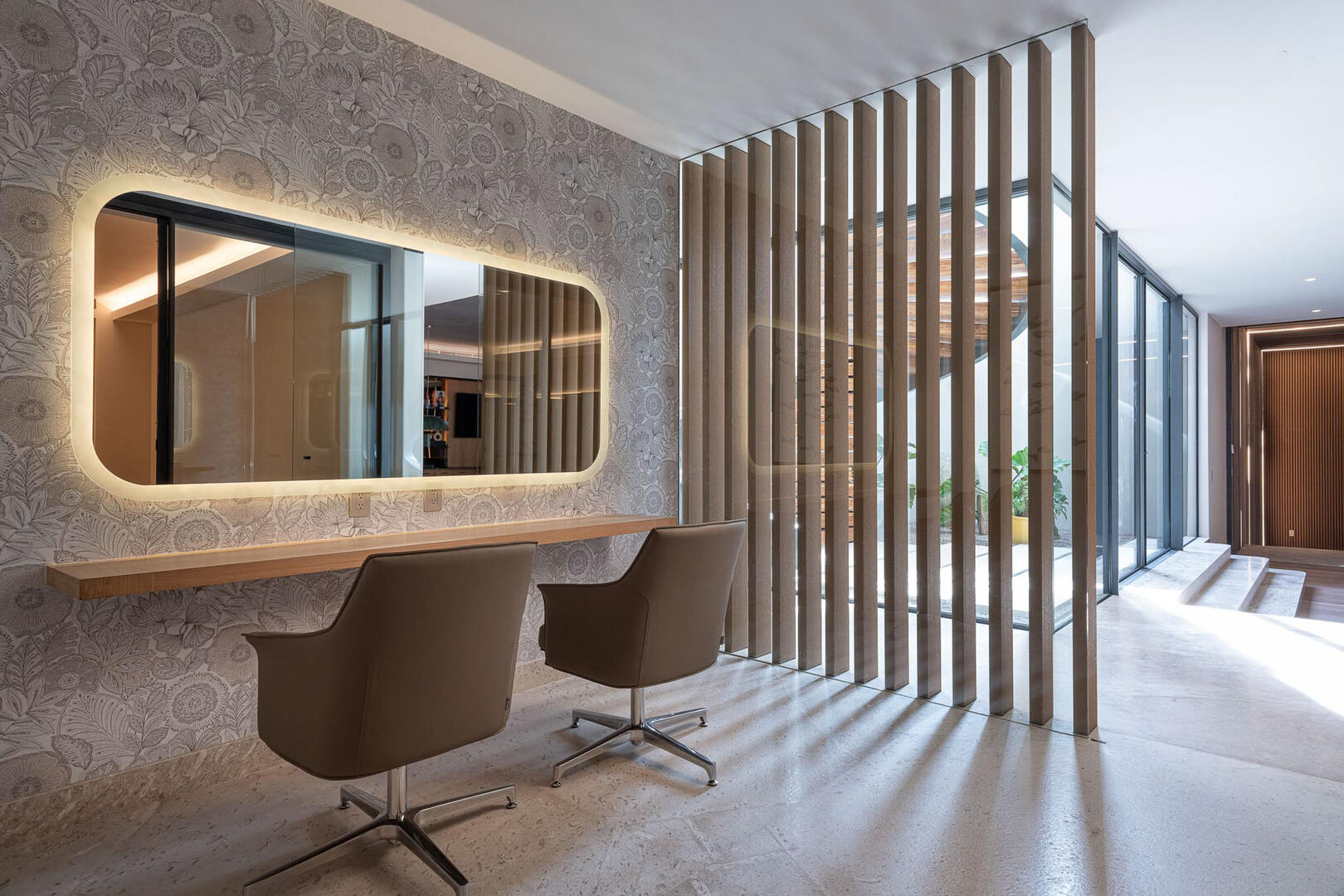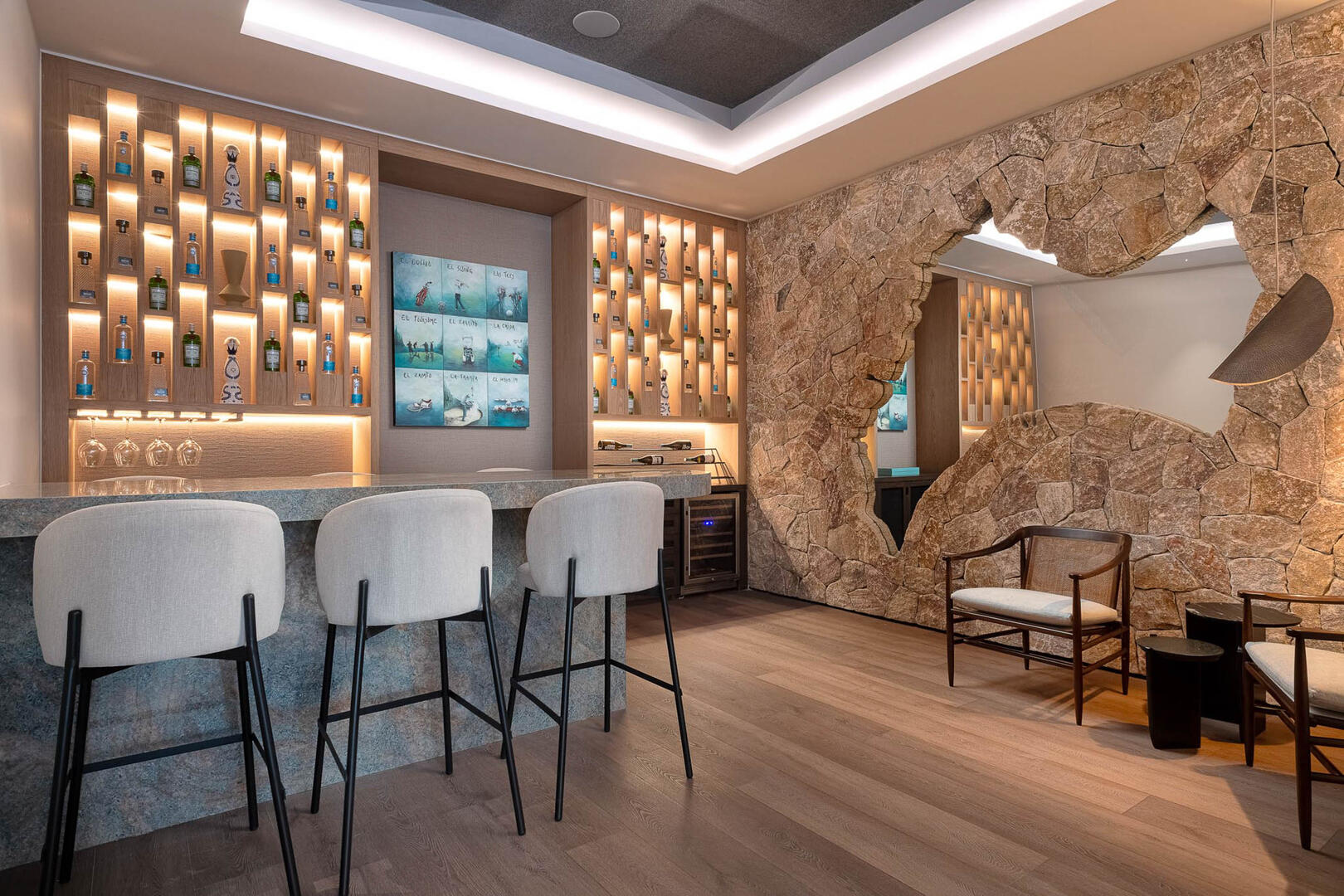 Elevated ceilings, garden and ocean views are all highlights of the private bedrooms, while a gourmet kitchen brings in island seating, rich wood cabinetry, an espresso machine, and a pizza oven. A media room and game room in the elevator home mean no shortage of entertainment and indoor things to do, from foosball to gaming tables, a pool table to the CAVA wine cellar, gym, and a relaxing home spa.