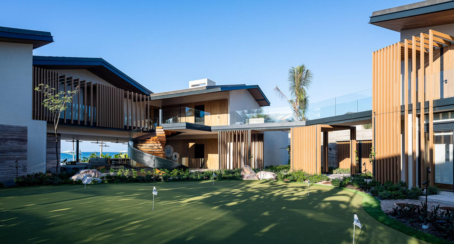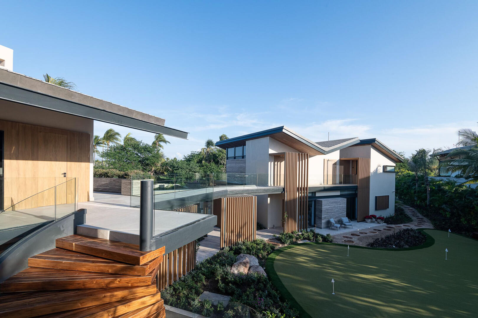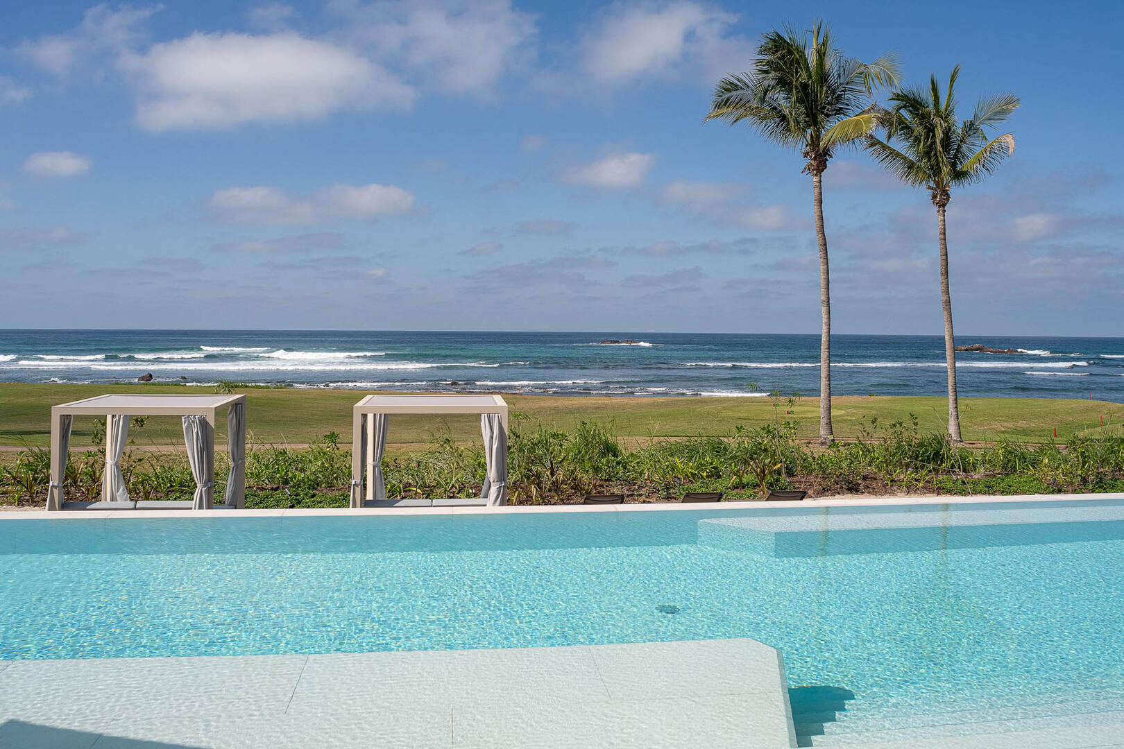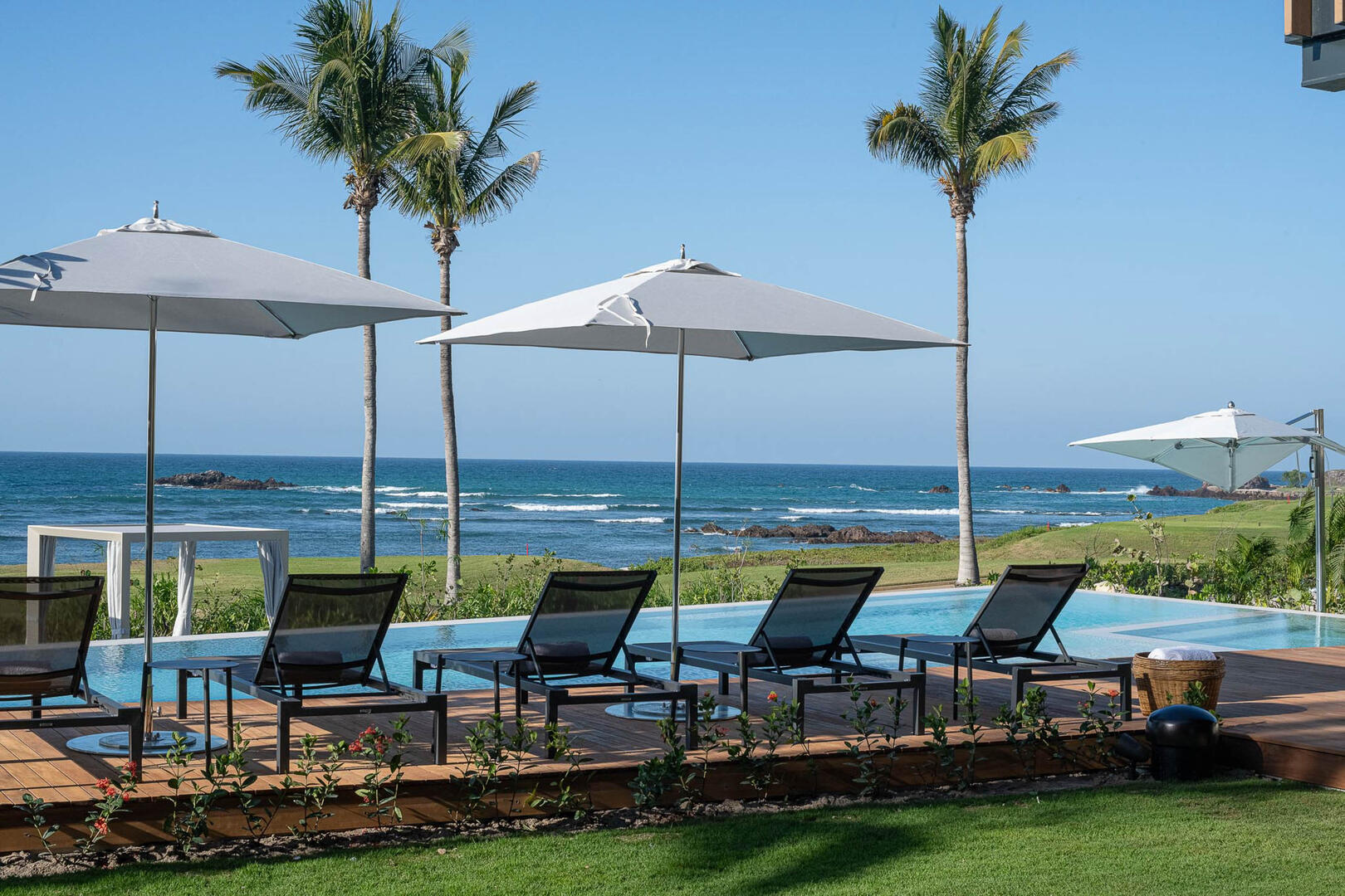 Just steps from the edge of the ocean and the famed Pacifico Golf Course, Punta Pacifico Sur exudes upscale luxury and grand inclusions. This eight-bedroom, 8.5-bath home is one of the larger rental properties on the peninsula, with enough space to comfortably house 18 guests amid an array of upscale delights. Two stories of sliding glass doors, glass-railed terraces and glass-rimmed walkways extend across the property, flanked by towering palm trees and lush tropical landscaping. Part of the exclusive Pacifico Estates collection in gated Punta Mita, Punta Pacifico Sur benefits from its close proximity to world-class golf and direct Pacific Ocean views.