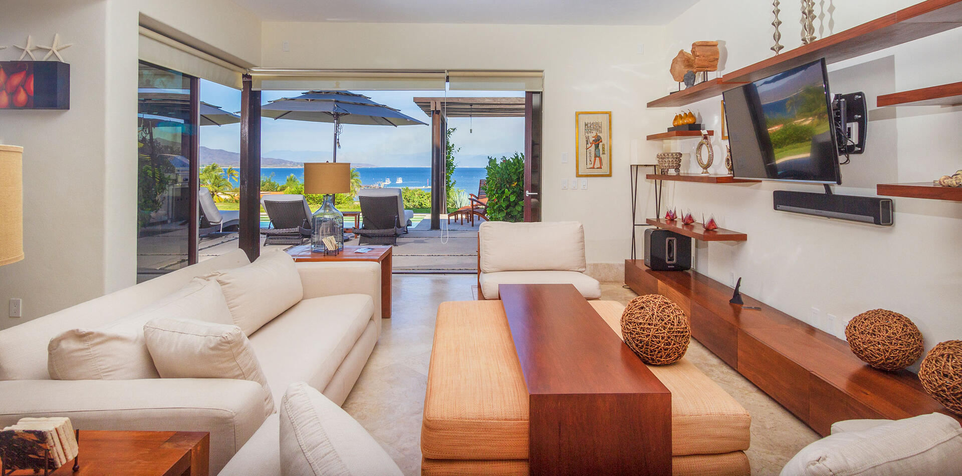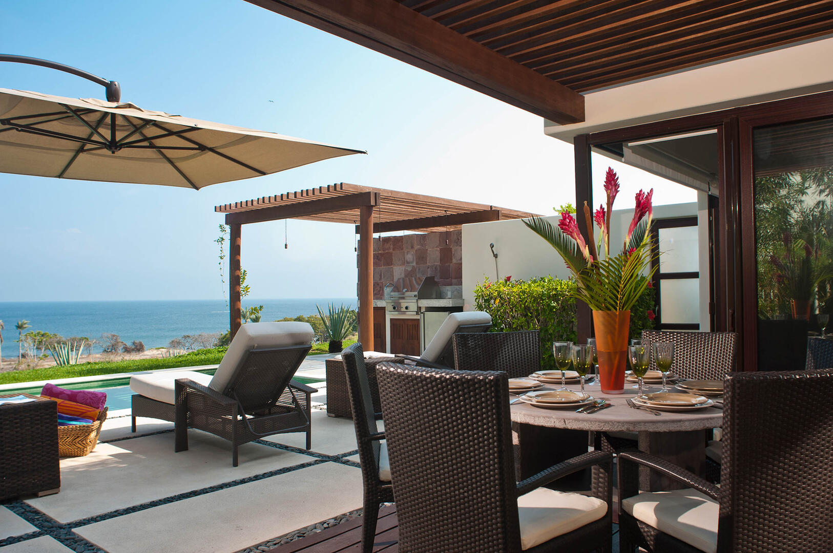 Tucked away on the south side of the peninsula, Villa Aguamarina presents an ideal starting point for your Punta Mita adventures. This three-bedroom, 3.5-bath, thatched-roof villa is available for up to 10 guests to explore the many world-class amenities and extras of this resort destination. Encircled by Zen-like gardens and tropical landscaping, the luxury villa features two levels of indoor/outdoor living space. Ocean and golf course views make this one of the best vantage points in Punta Mita, as the villa also sits close to some of the best private attractions in the community.