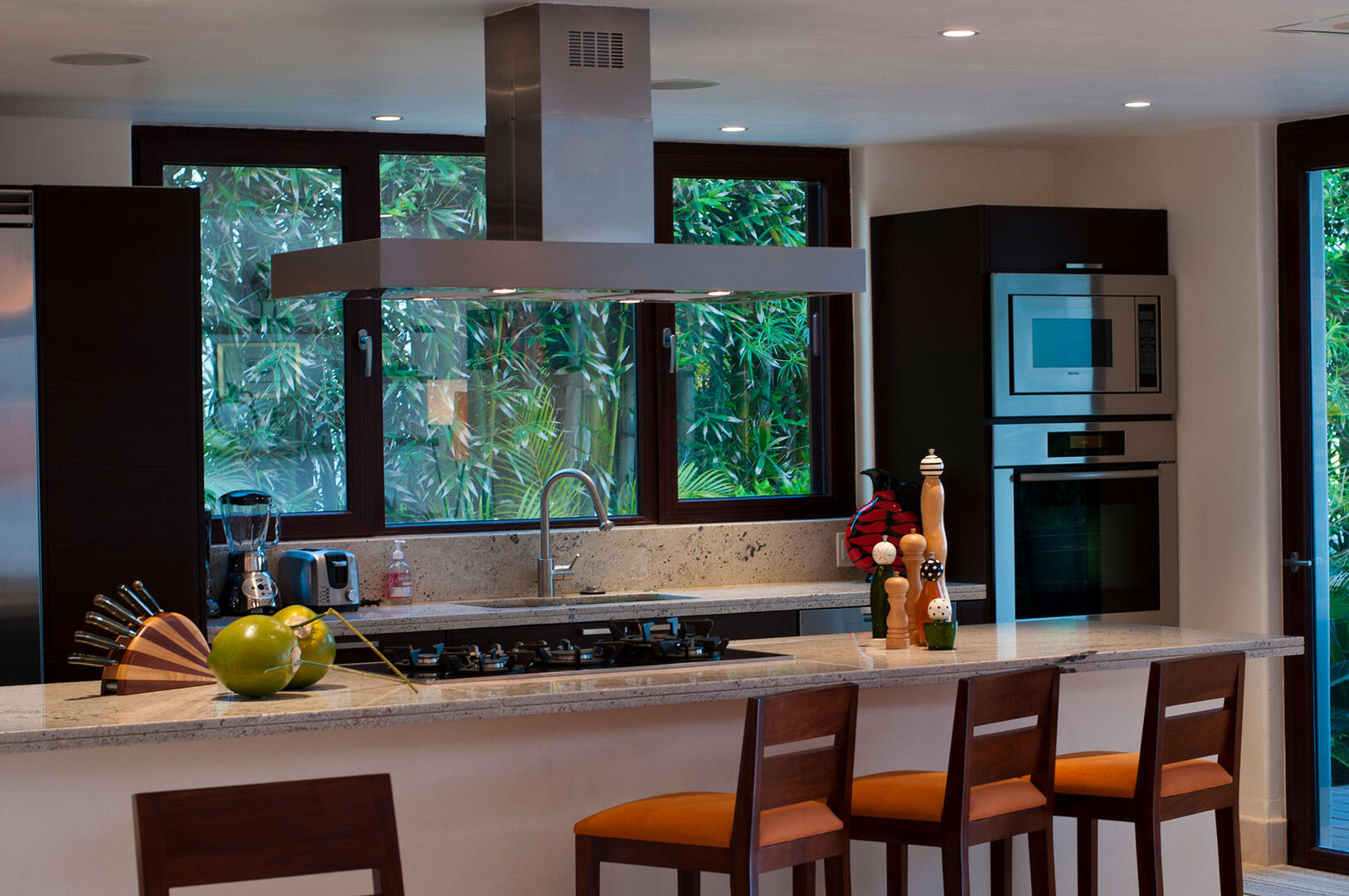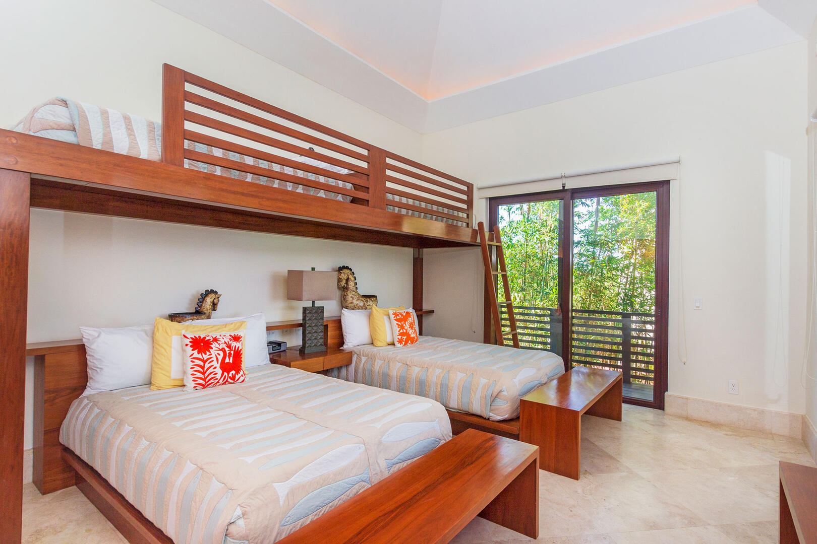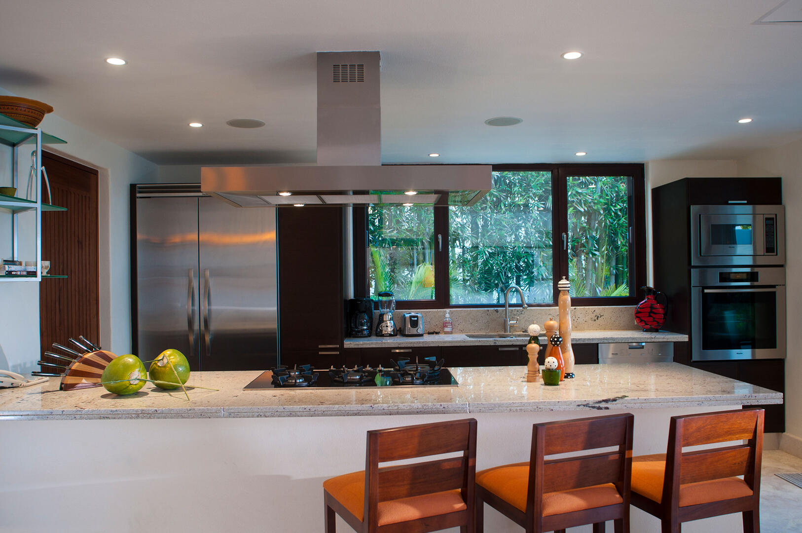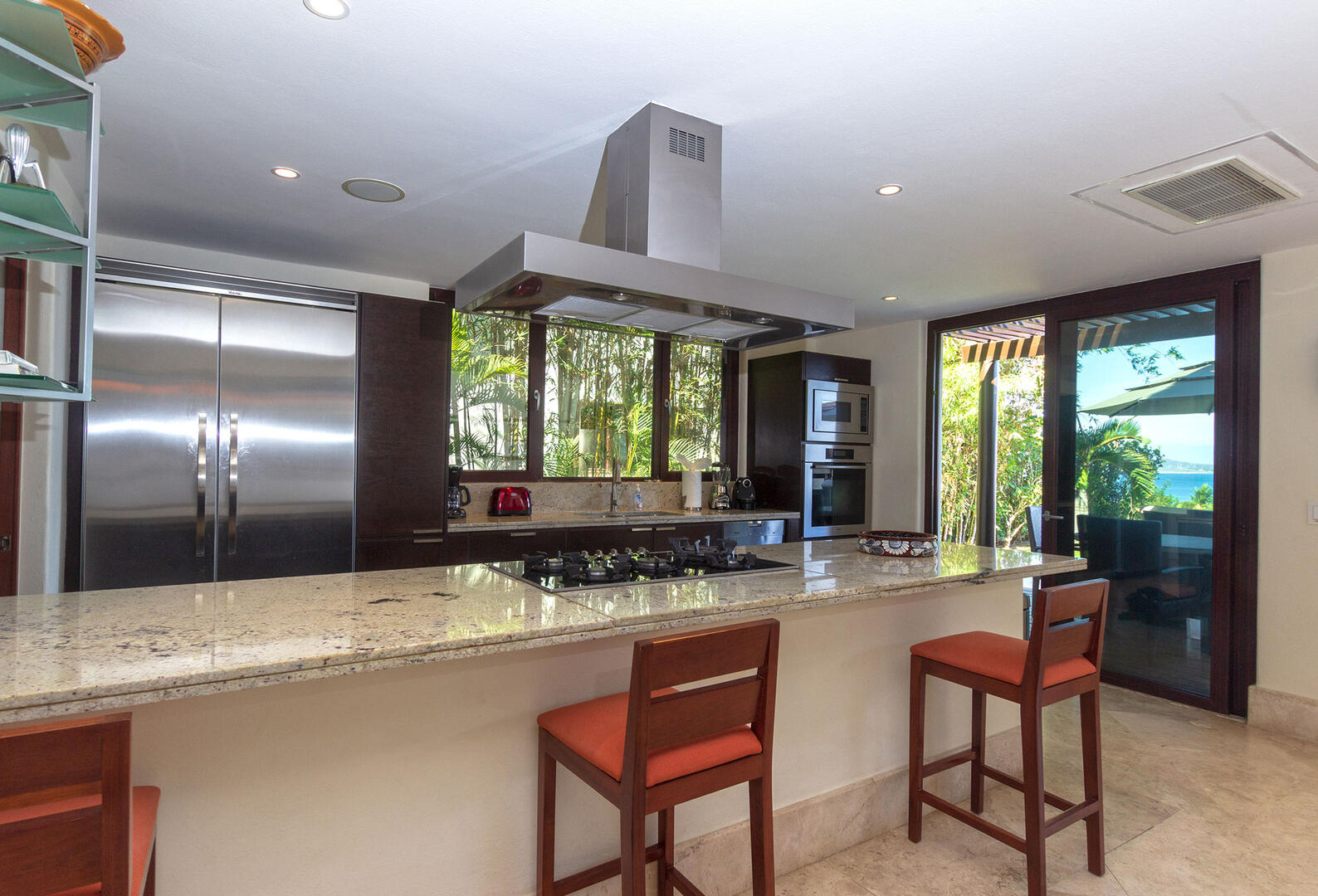 Each of the three private bedrooms opens to outdoor space in the form of ocean views or direct views of surrounding trees and lush landscaping. On the inside, continuous marble flooring accents the interior of the home, which features an open living area, a large dining table for eight, and nearby counter seating in the gourmet kitchen with stainless-steel appliances. Free Wifi, concierge service, and daily housekeeping are all included with your stay.