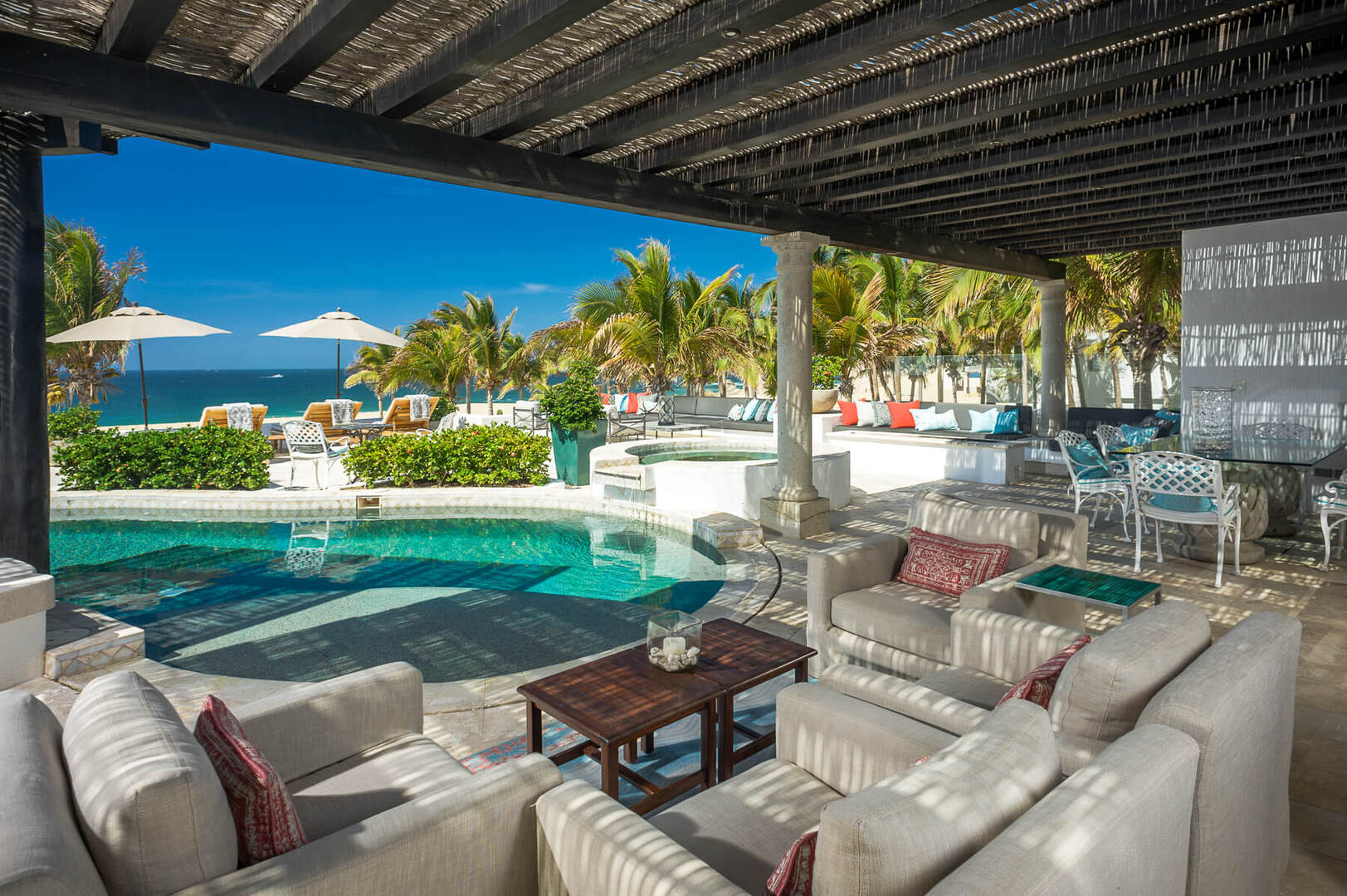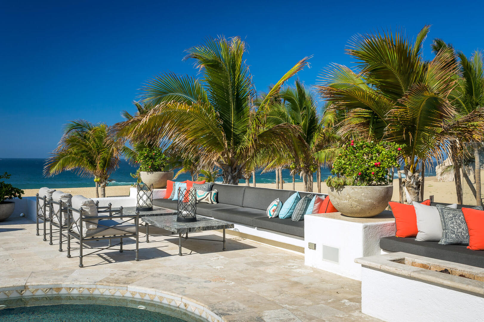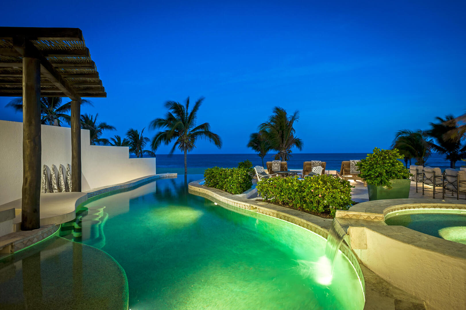 One level above are the main entertainment and recreation areas with a vast and stunning outdoor terrace, infinity pool, palapa shaded bar and eating area. Step inside to the grand room where living and dining areas and kitchen reside amid a decor of light tones and rich accents with warm woods, dark granite countertops and premium kitchen appliances. You'll have a once-in-a-lifetime beachfront escape when you stay at Villa Pacifica! Villa Pacifca is ON the beach.