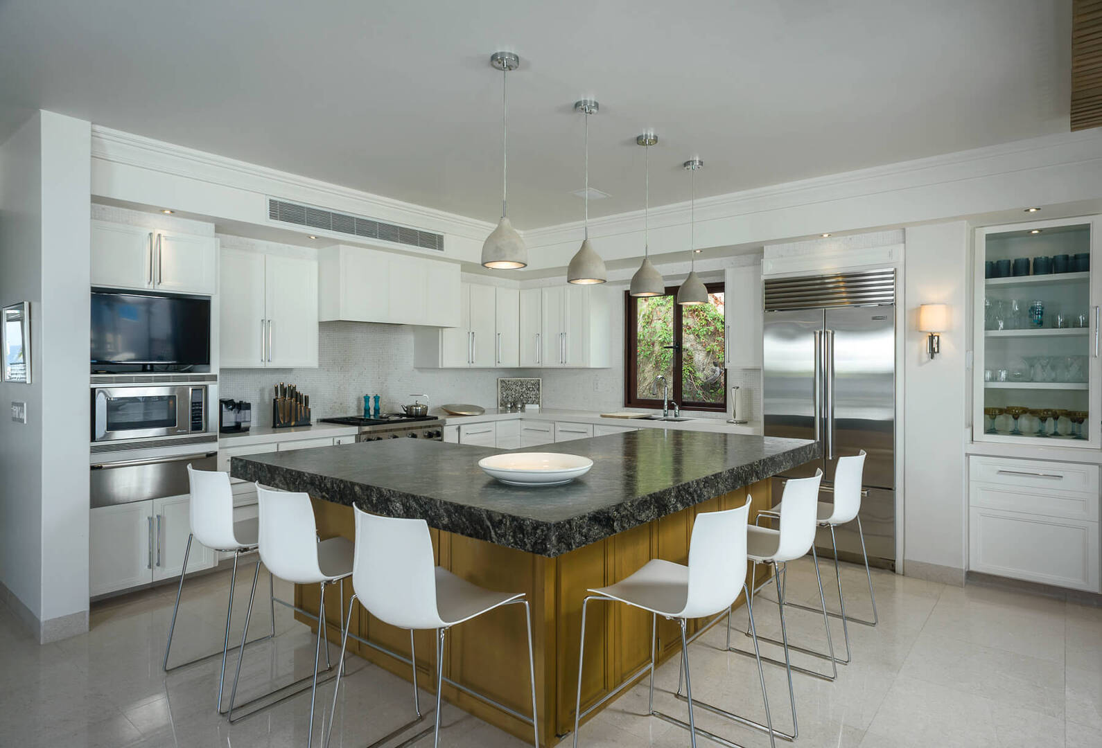 At 9,000 square feet, Villa Pacifica is a home that is open and expansive, both indoors and out. Each of the 5 bedrooms have been designed with your comfort in mind and include their own spacious King-size bed. Three bedrooms have their own private terrace and ensuite bathrooms, while the fourth and fifth bedrooms have a shared bathroom.