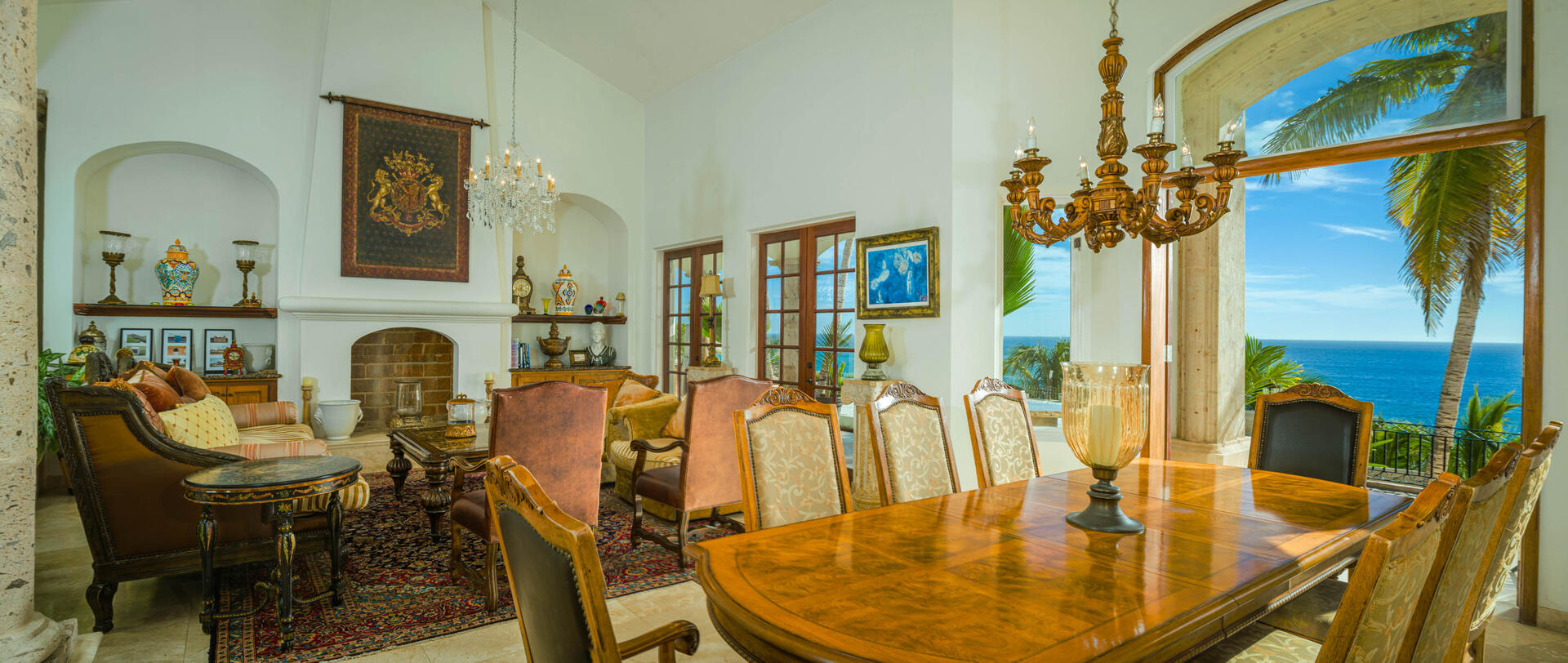 Bringing Europe to Mexico with Italian flair, Villa Paraiso features luxury Tuscan furnishings, brocades and tapestries with the bright expansiveness of Mexican architecture. Ceilings are high and complimented by beautiful archways over marble floors and all the rooms are open with defining elements of rich woods, white walls and warm tones.