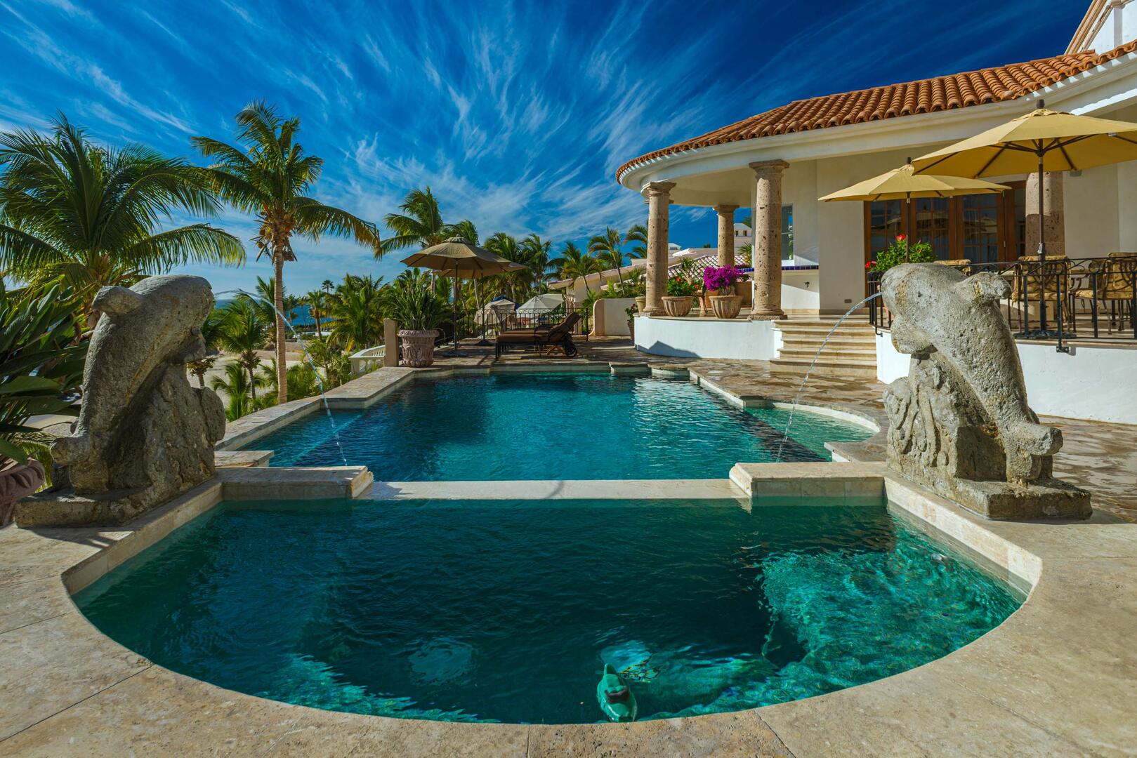 Quality of materials, appliances and technology is apparent at Villa Paraiso where luxury and comfort are a given. The living and dining areas, which are adjacent to the kitchen on one side with the entertainment and media room adjacent on the other, make an ideal environment for those wanting to participate in different activities without disturbing the other. Whip up a 5-star meal in the gourmet kitchen and serve it to your guests at the regal dining table, as you take in the spectacular views of the Sea of Cortez.